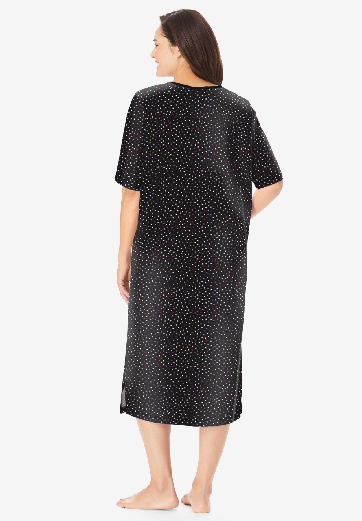Sleep sound in our long, soft cotton sleepshirt. Scoop neckline with satin trim details and straight hem with side slits. 46" length.