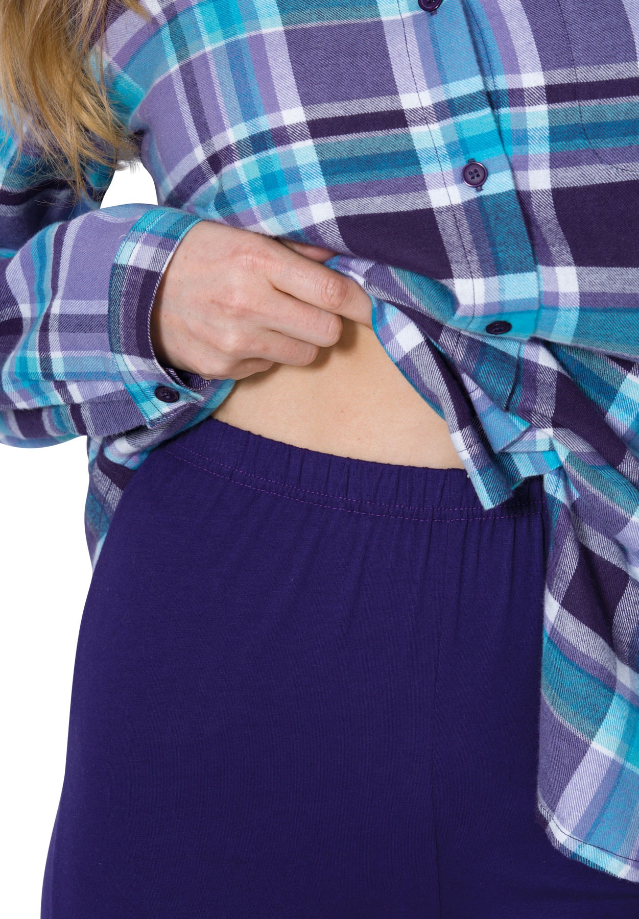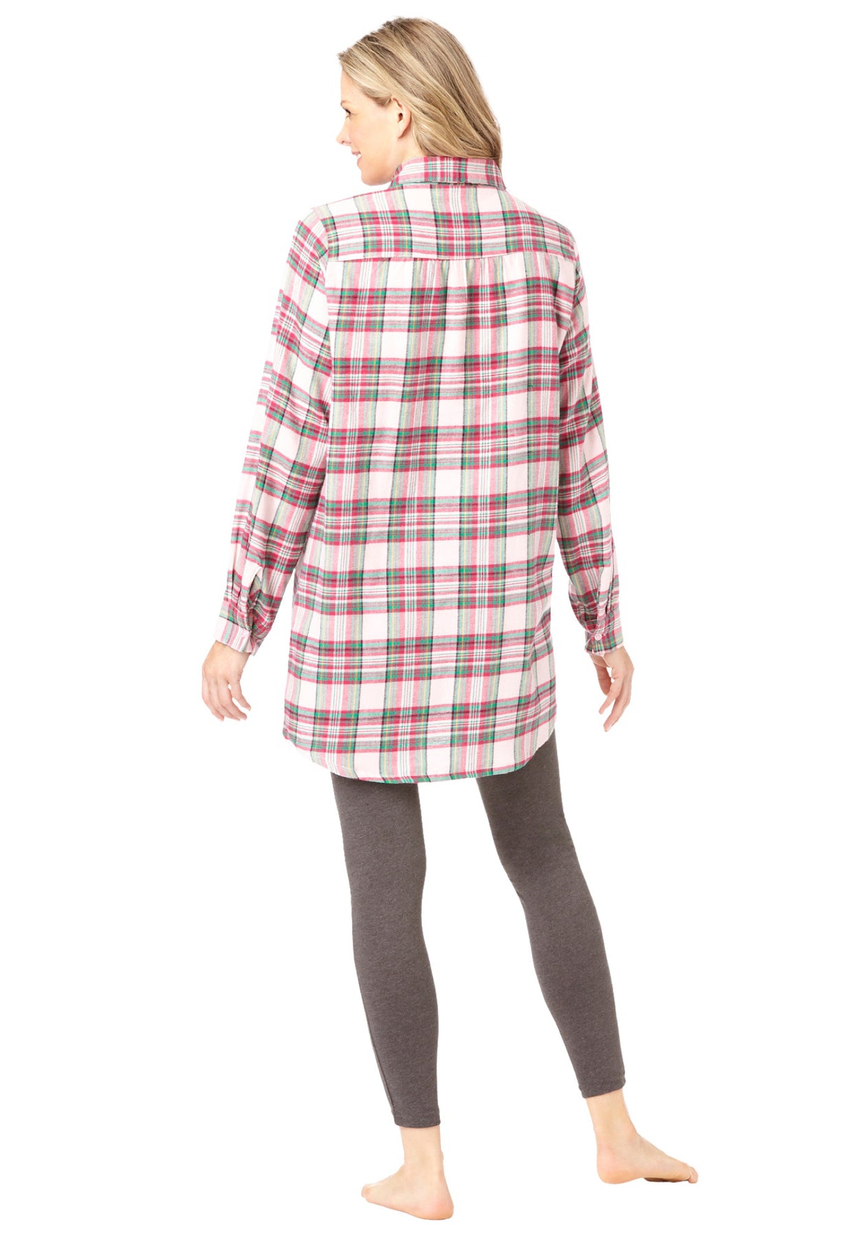 This cozy pajama set pairs a plaid button down tunic with sleek leggings for all-night comfort. Made in a relaxed fit, the sleep shirt has a spread collar and button cuffs along with a chest pocket and shirttail hem just like your favorite button down. Super stretch leggings with an elastic waistband are soft and comfy while you sleep or lounge.