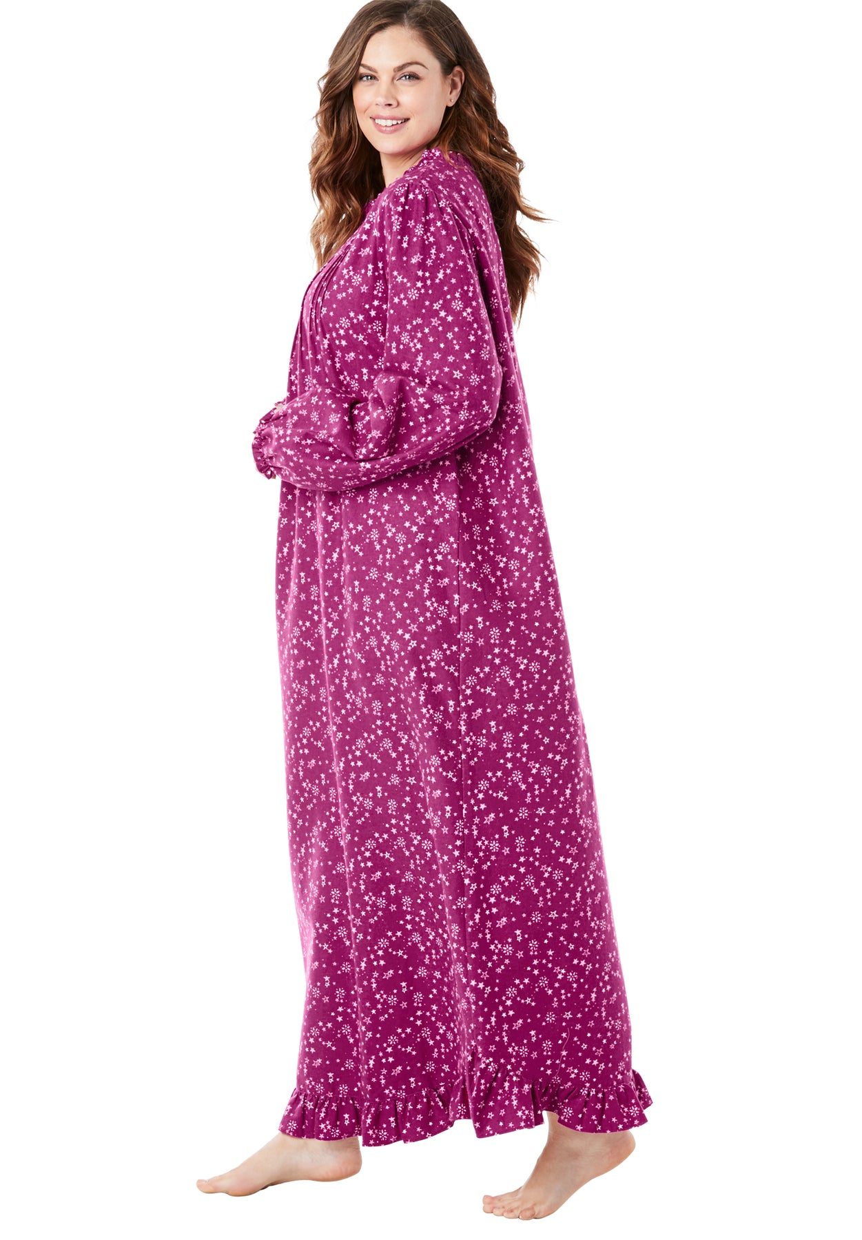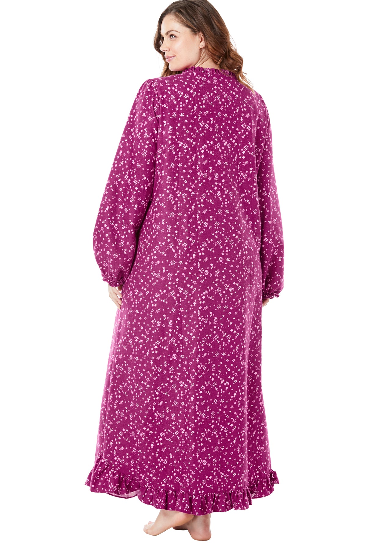 This printed nightgown has feminine appeal with an adorable bib and ruffles at the sleeves and hem. Made in a maxi length for full coverage, the relaxed fit still keeps you super comfy. Made in pure cotton for ultimate breathability when you sleep. Super soft, this is what dreams are made of.