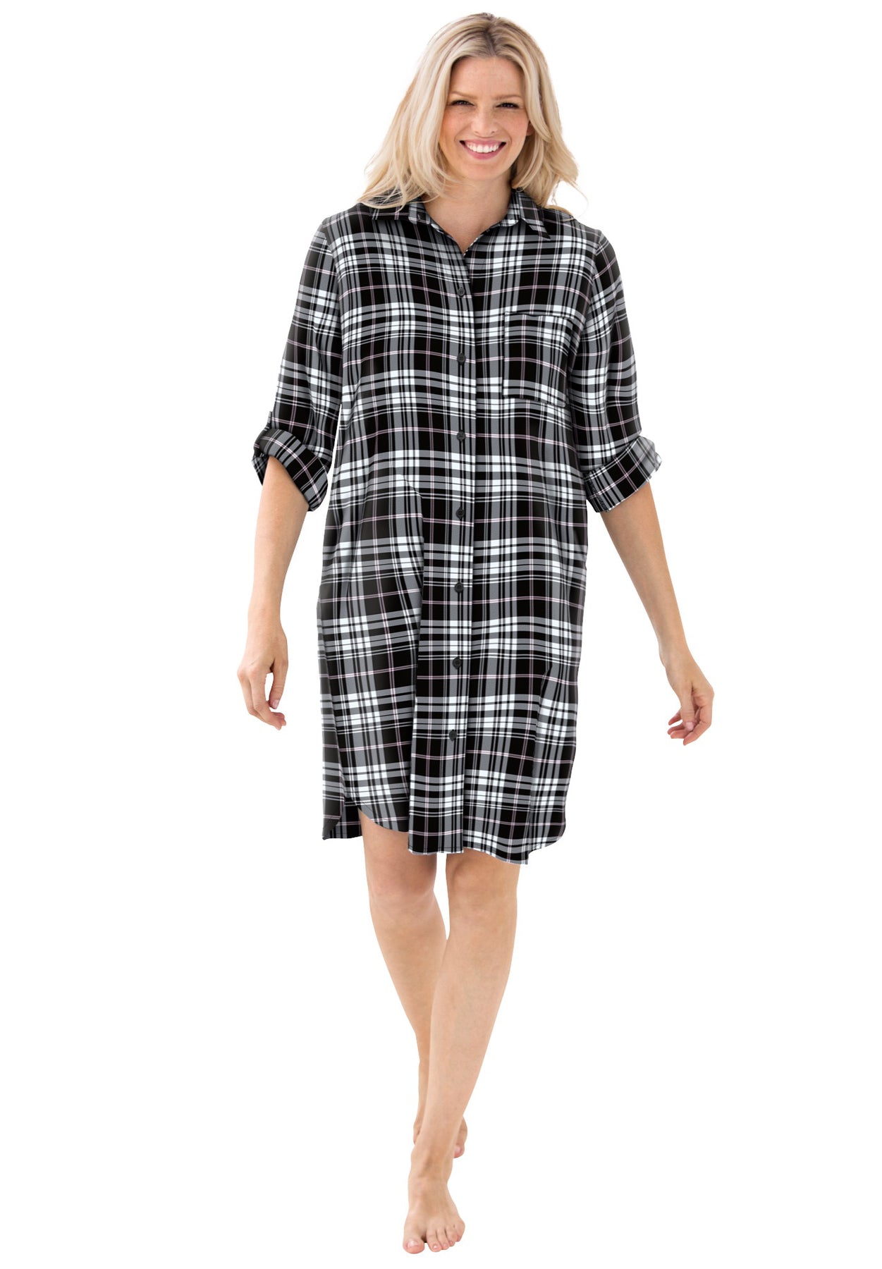 Plaid Flannel Button-Front Sleepshirt | Dreams & Co.