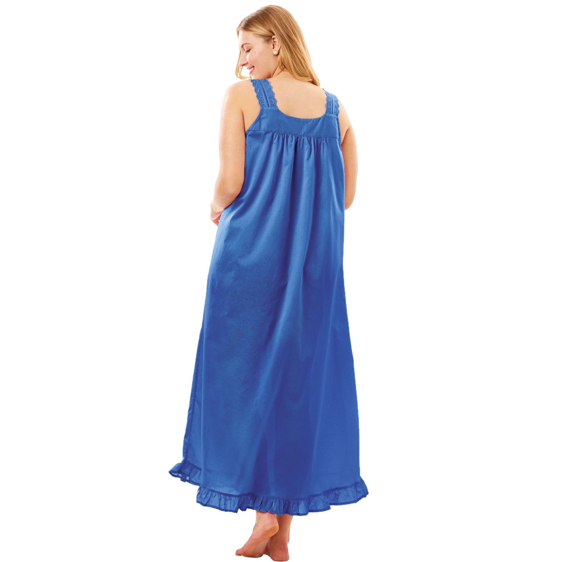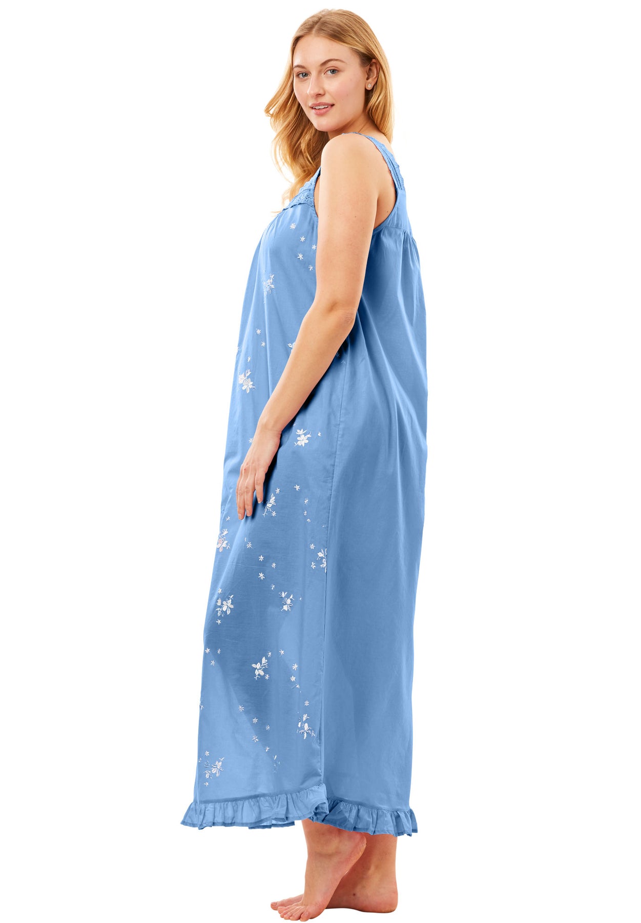 Soft, sweet and made from pure cotton, this gown is positively dreamy. With a shirred yoke at the sweetheart neckline, a rose embroidery pattern and eyelet trim.