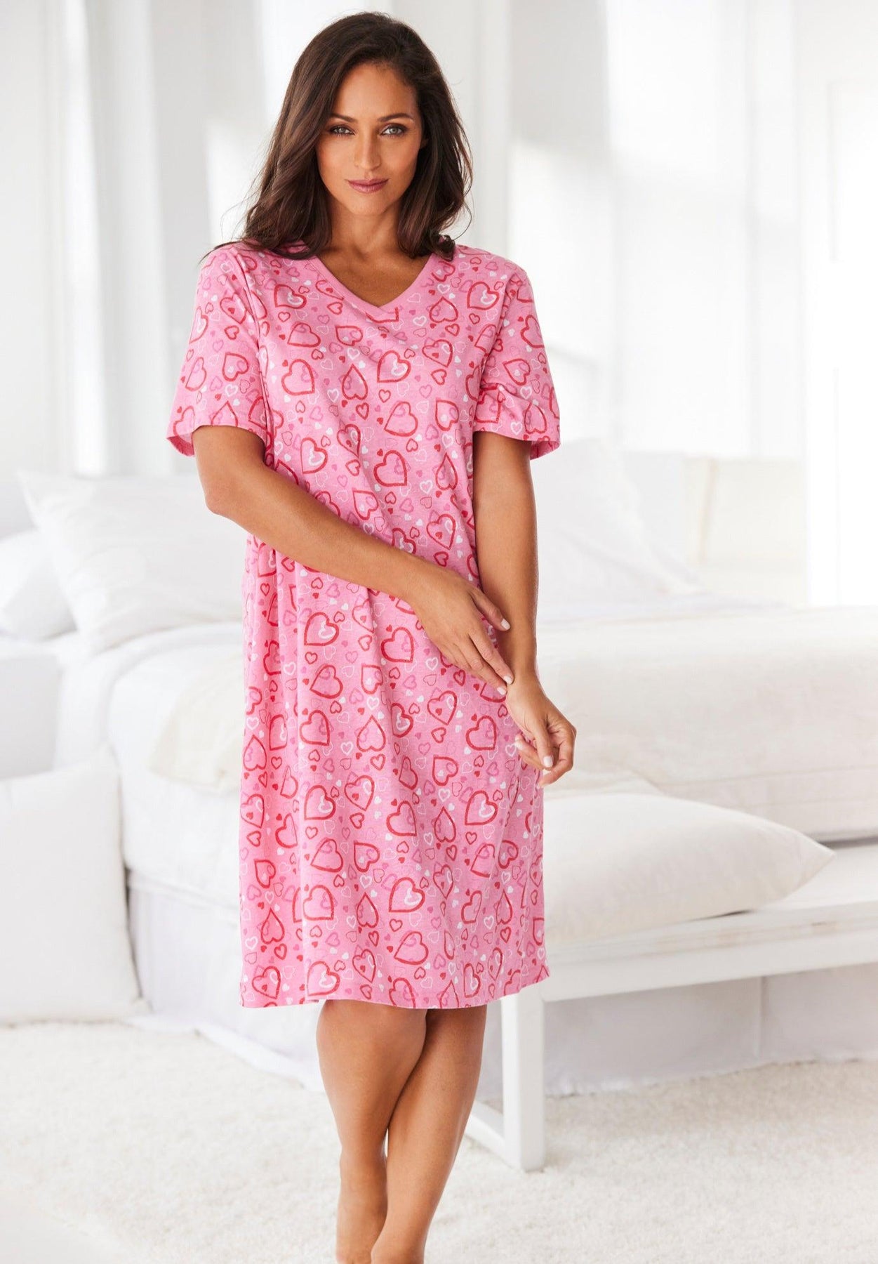 Made from pure cotton, this soft sleep shirt with a ribbed V-neck comes in fun and whimsical prints to snuggle up to. The A-line shape provides a relaxed feel and short sleeves are ideal for sleeping comfort. The perfect piece for lounging around.