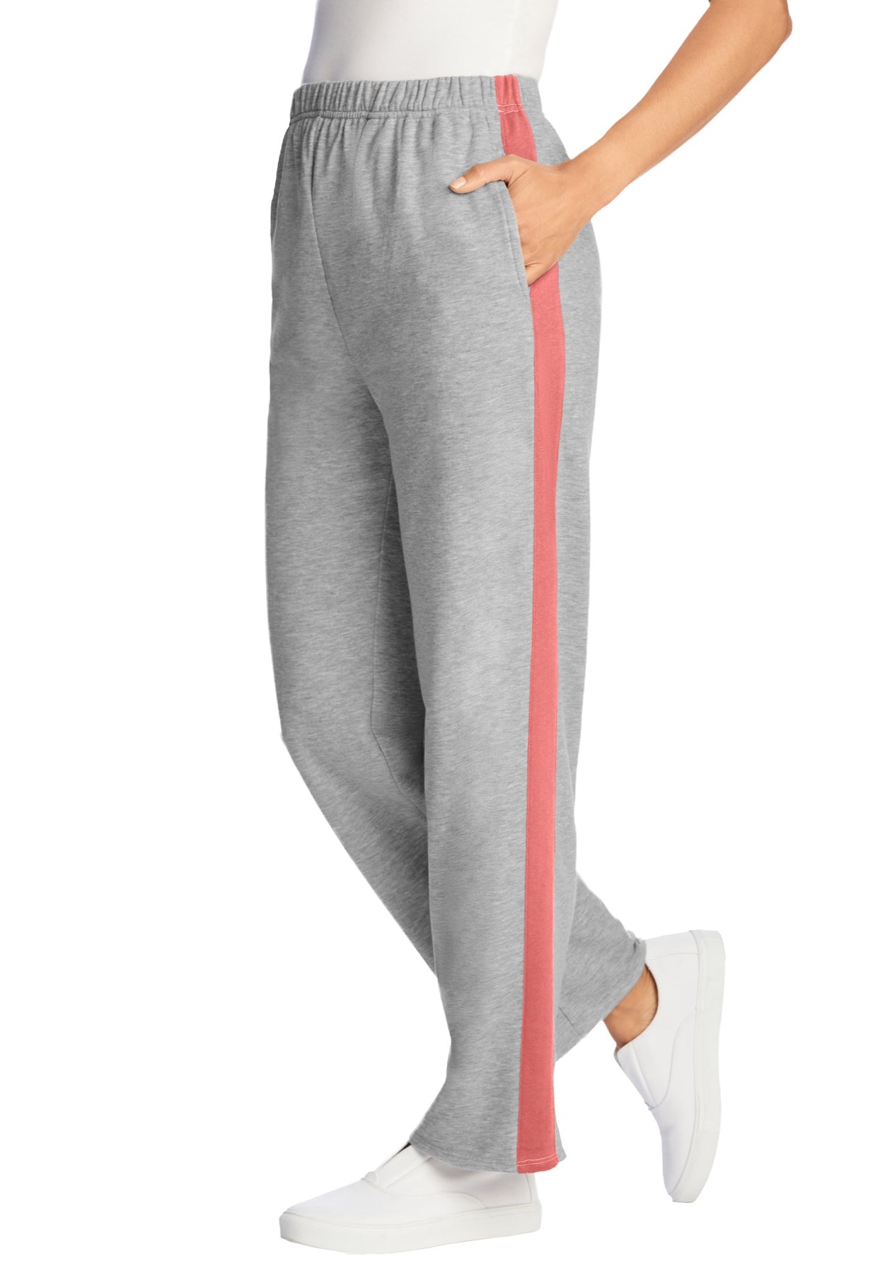 Experience ultimate comfort in these French terry pants that wick away moisture and keep you fresh all day. The full elastic pull-on waistband offers maximum stretch for a secure and comfortable fit. Convenient side pockets keep essentials handy while you're on the move. Great for running errands, walking or simply lounging at home. The inset side stripes add an elegant vertical accent.