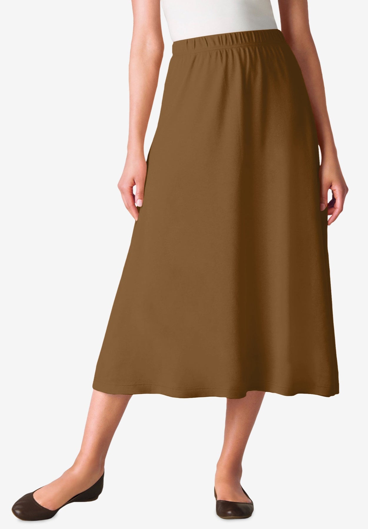 Rated number one for all-day comfort and fantastic versatility, the 7-Day Knit skirt should be an important part of your wardrobe in every color! This soft, breathable fabric blend always looks smooth. The full covered elastic waistband offers pull-on convenience and a made-for-you fit. The easy sweep cut is perfect for running errands, casual days, dressed-up casual—even lounging at home! The essential side-seam pockets add practicality without compromising style.
