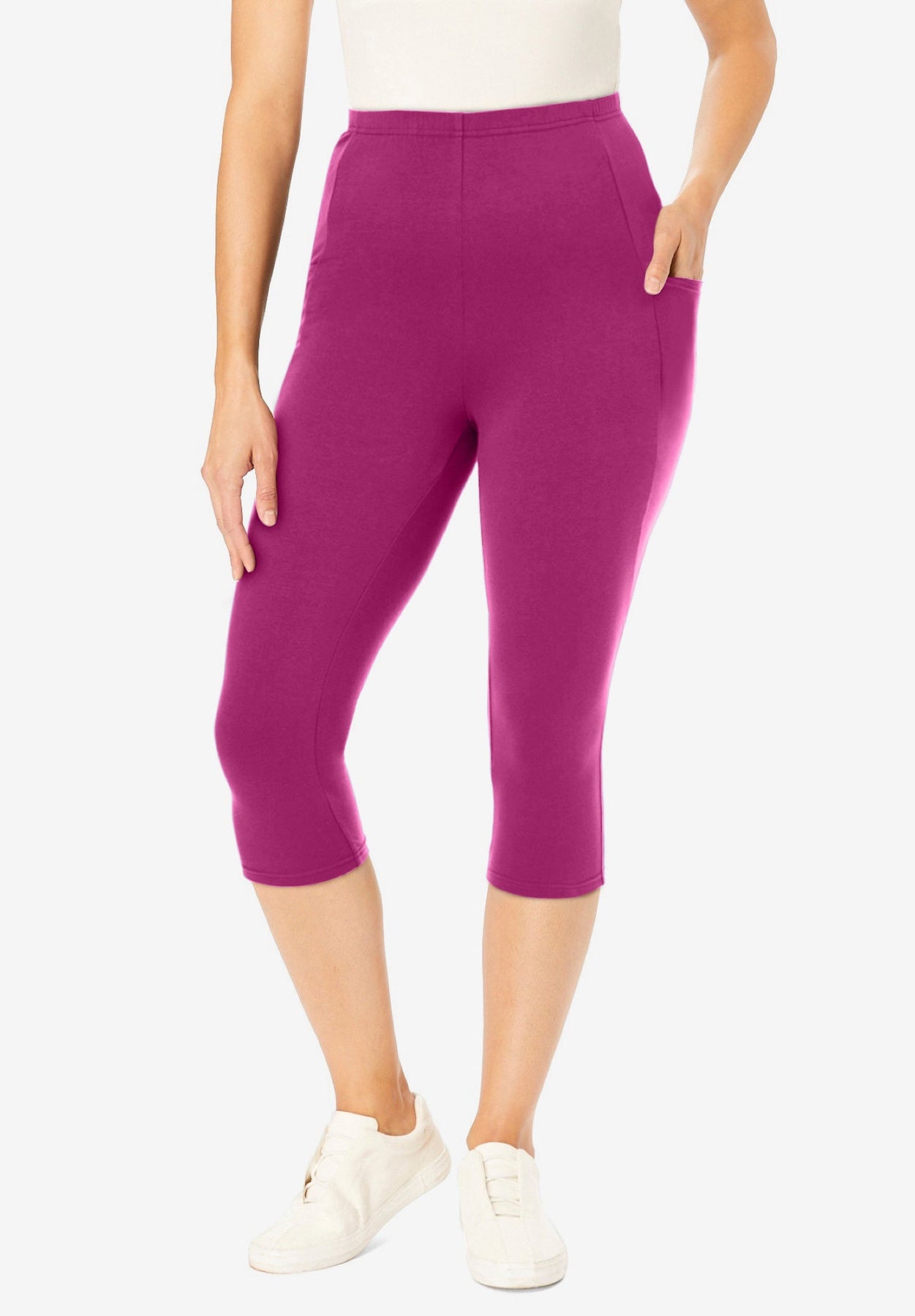 The perfect stretch fit capri leggings with convenient side pockets for essentials! Whether at home or on the go, pull-on stretch pocket knits move and flex for all-day comfort. Pair with your favorite tunic for a stylish, comfortable silhouette. The full covered-elastic waistband ensures all-day comfort and a fit that feels made for you.