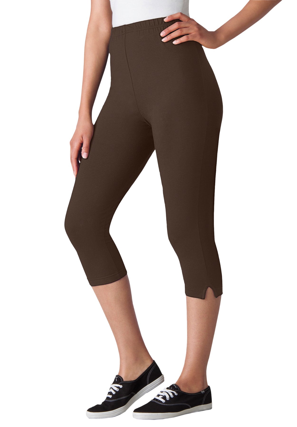 Start a great athleisure outfit with these stretch cotton knit pull-on capri leggings! Ideal for everything from lounging to running errands, they offer a comfy, flexible fit that moves with you. The fully covered elastic waistband ensures all-day ease. Their sleek, body-hugging silhouette creates a look that beautifully contrasts with relaxed-fit tops or oversized sweaters. This combo balances comfort and style effortlessly. Plus, the breathable stretch-cotton blend keeps you comfortable all day long!