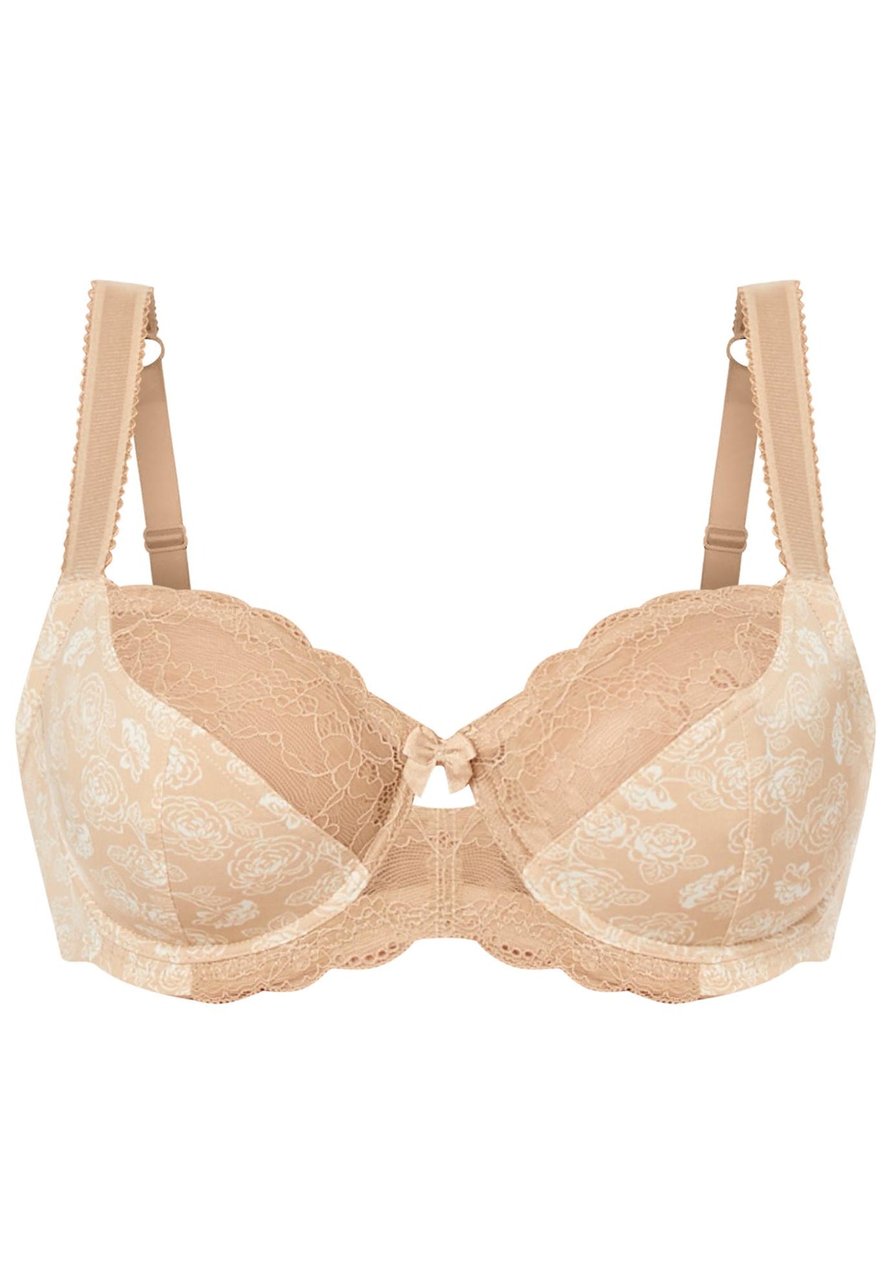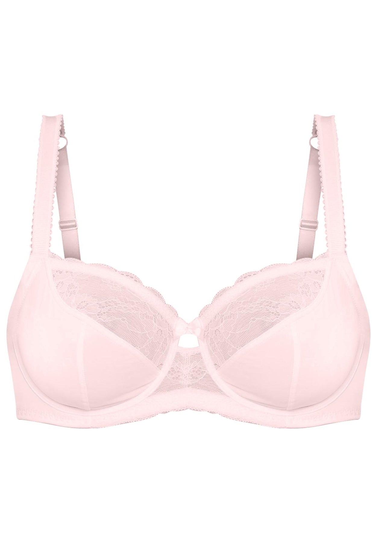 Get lovely lift and a modern, round shape with the molded cups of this underwire bra. Lovely lace trim on the front band and cups add a delicate detail that will make you feel as pretty as it looks.