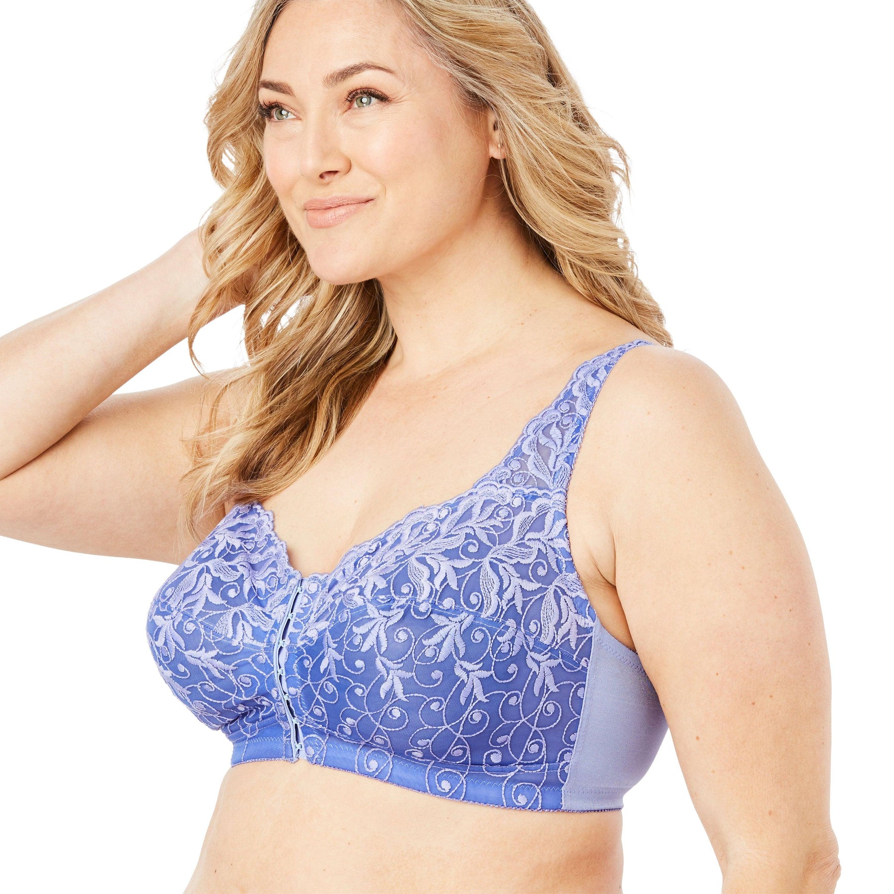 This beautiful full-coverage bra is destined to be your new favorite when you want to feel pretty. A front-closure design with comfortable, wireless support slips right on and is easy to hook closed. Look amazing, feel even better.