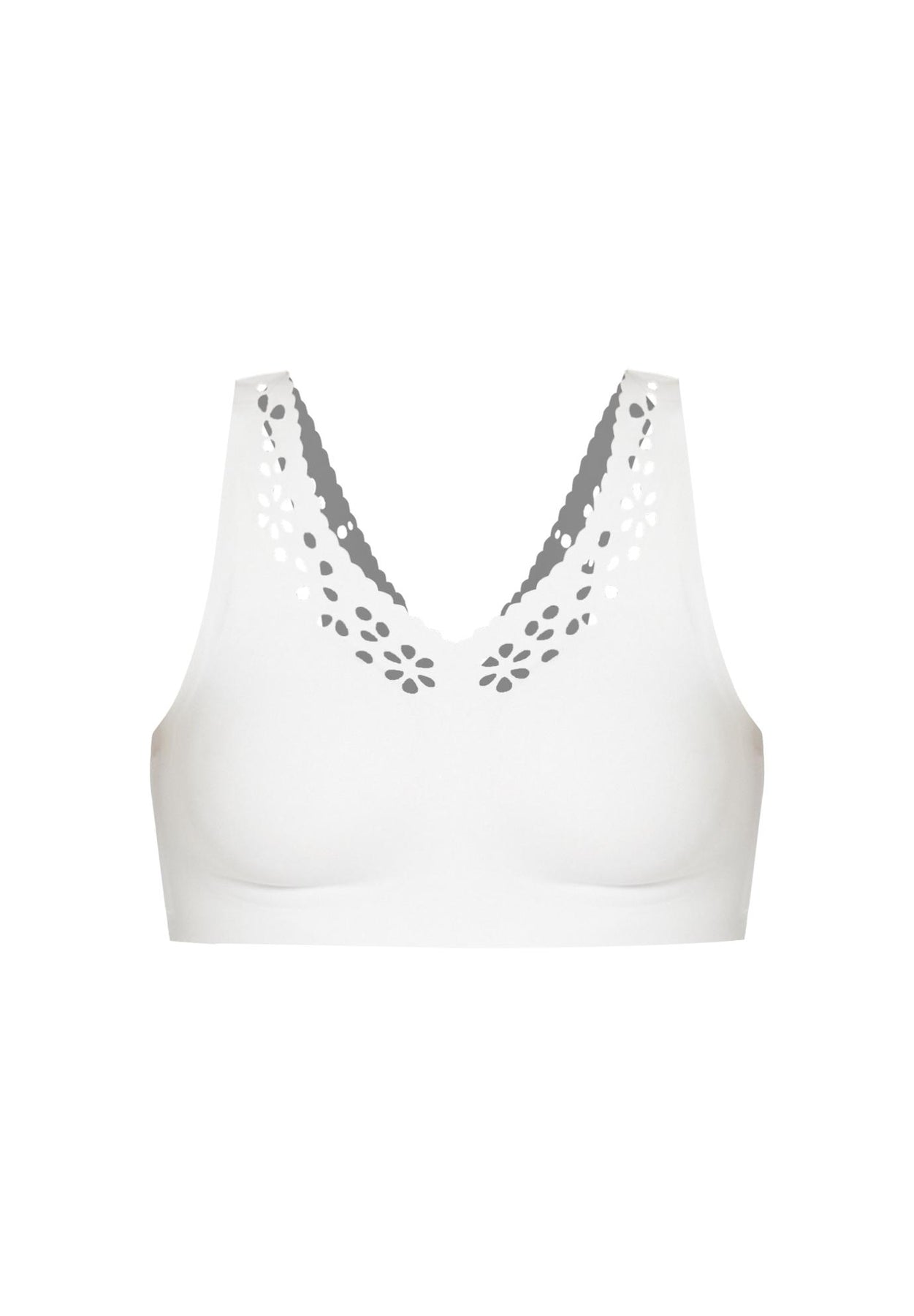 Our 360° Leisure Bra is a an all-day any day comfort staple. It is made from ultra-smooth microfiber and has removable padding. It has an easy back closure and features a pretty scallop edge and cut out details at the neckline.