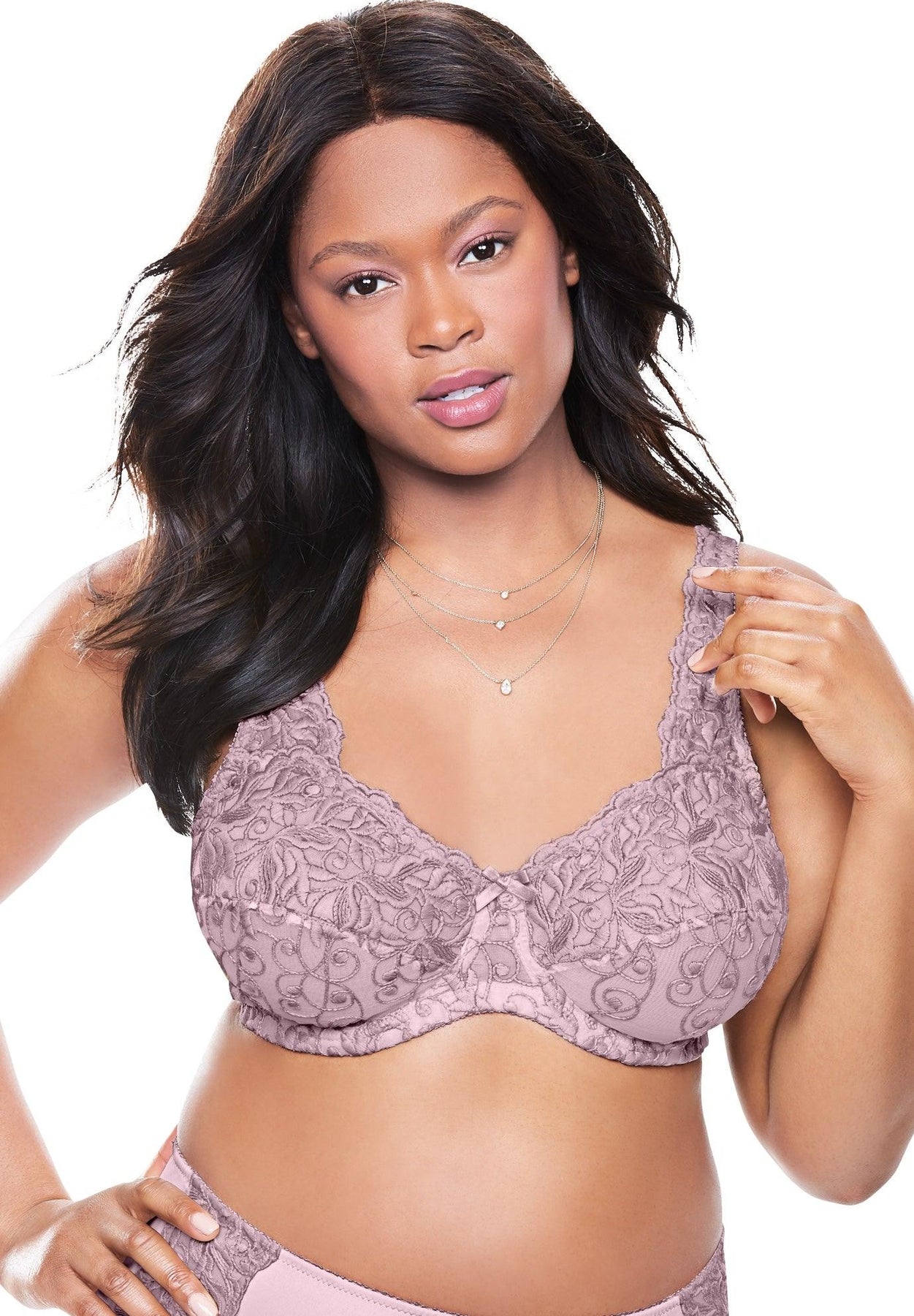 Pretty lace and full support—all without the wire. This beautiful full-coverage bra is destined to be your day-to-night favorite. Stretch sides give enhanced comfort and  padded straps prevent shoulder strain.