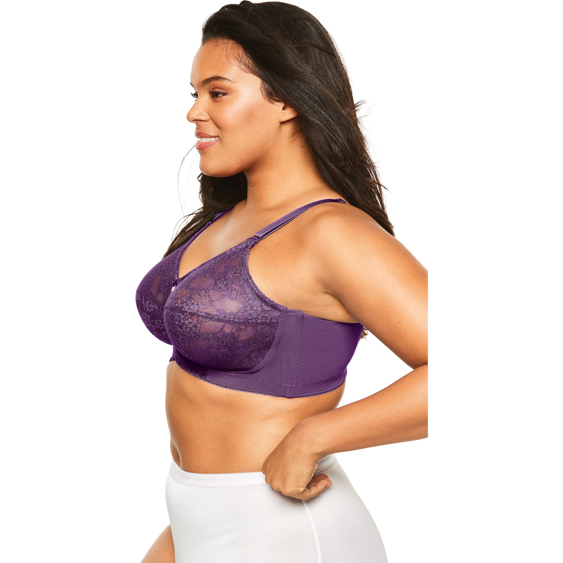 This full-coverage wireless lace bra has soft lace cups with seaming and an inner sling for shape and support. Designed with non-stretch woven straps and a contoured bottom band plus boning at the side seams for extra support.