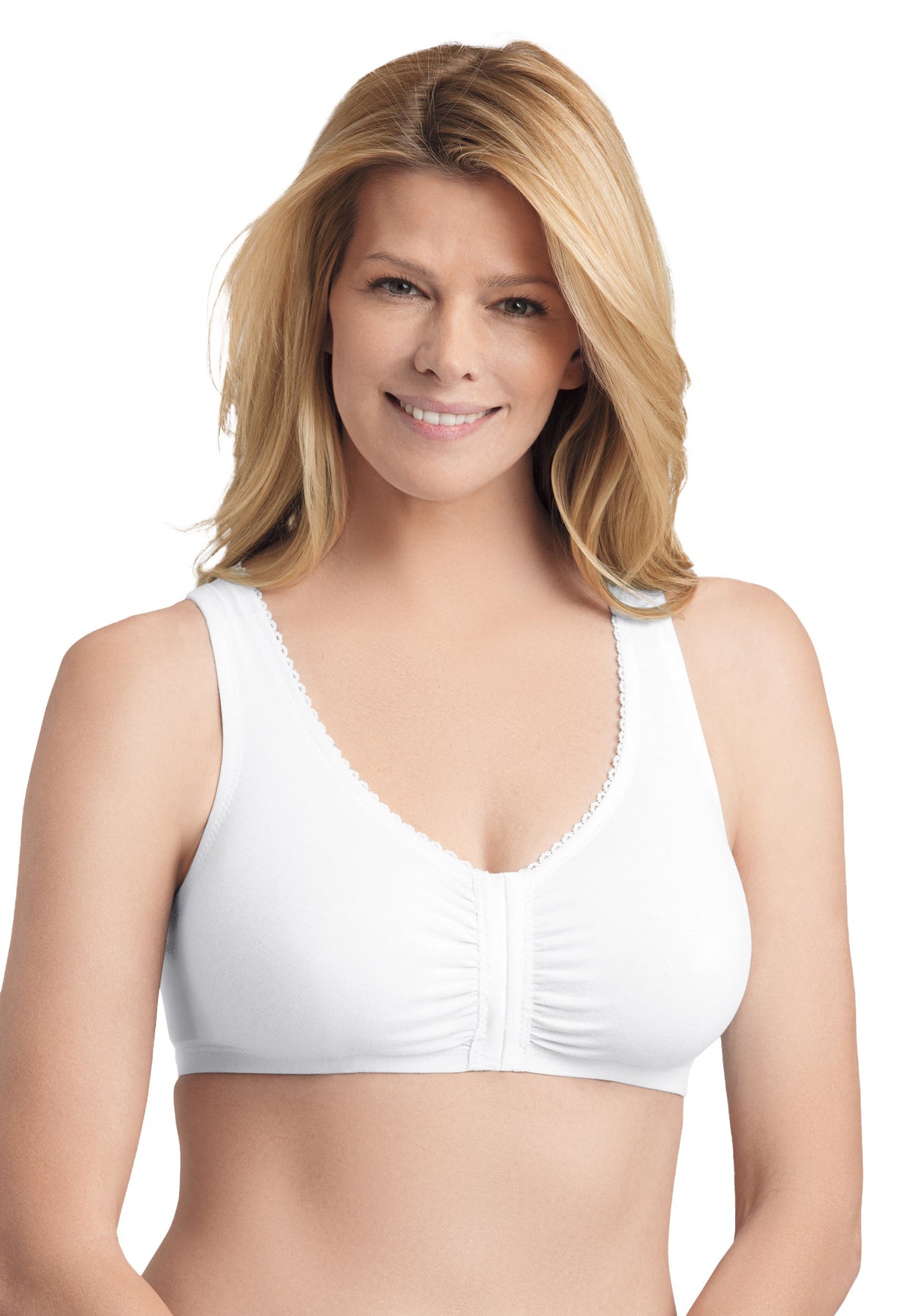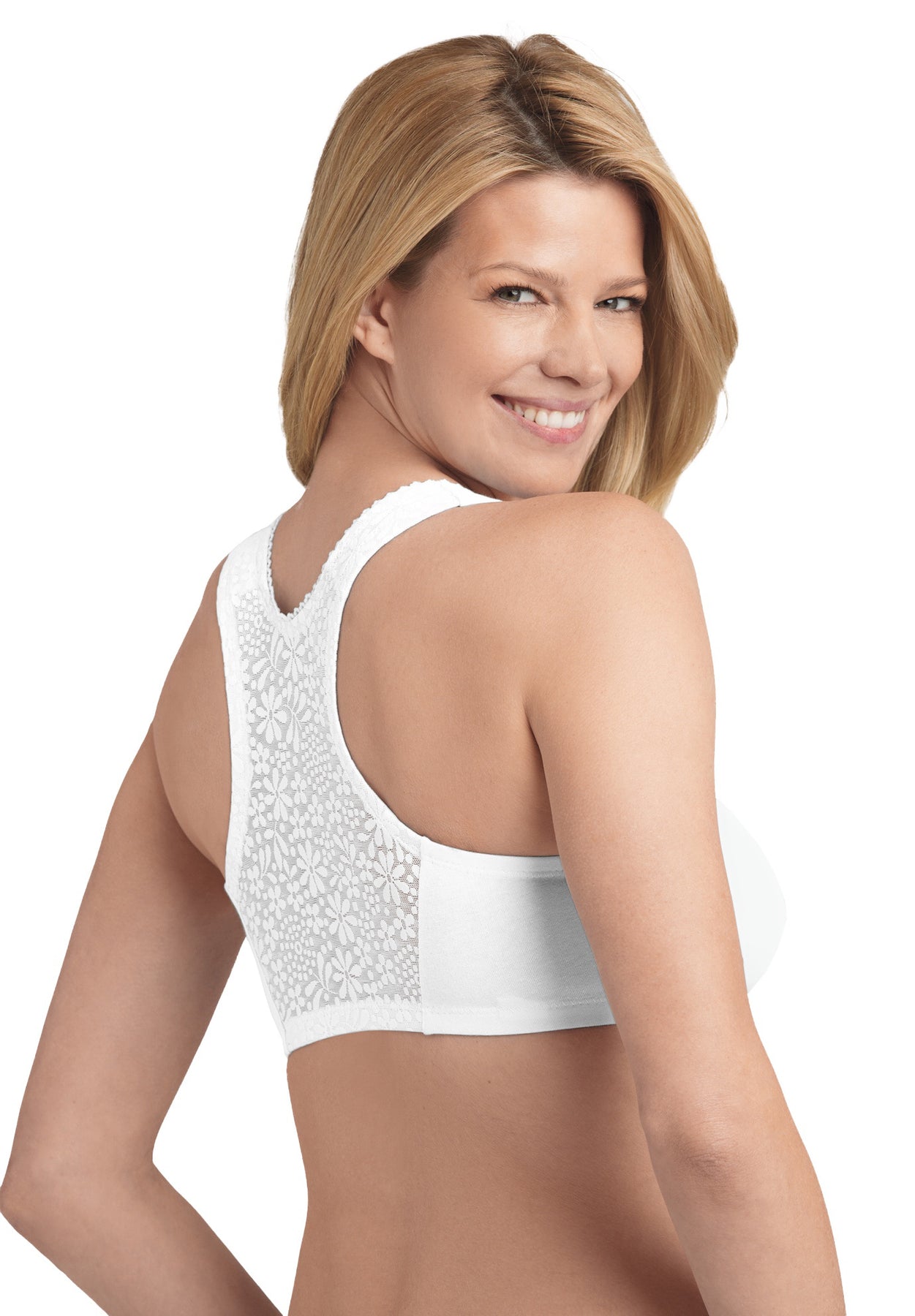 Perfect for leisure or on the go, this Front-Close Lace Back Bra feels smooth against the skin and offers light lift and a natural shape.
