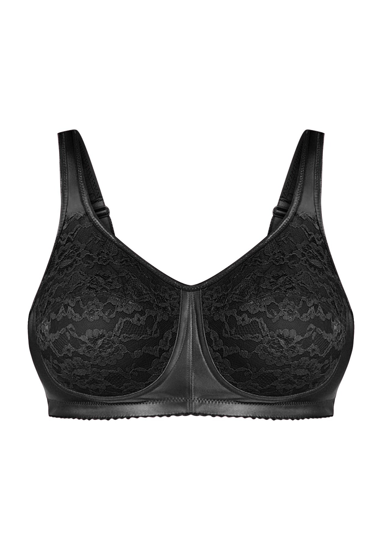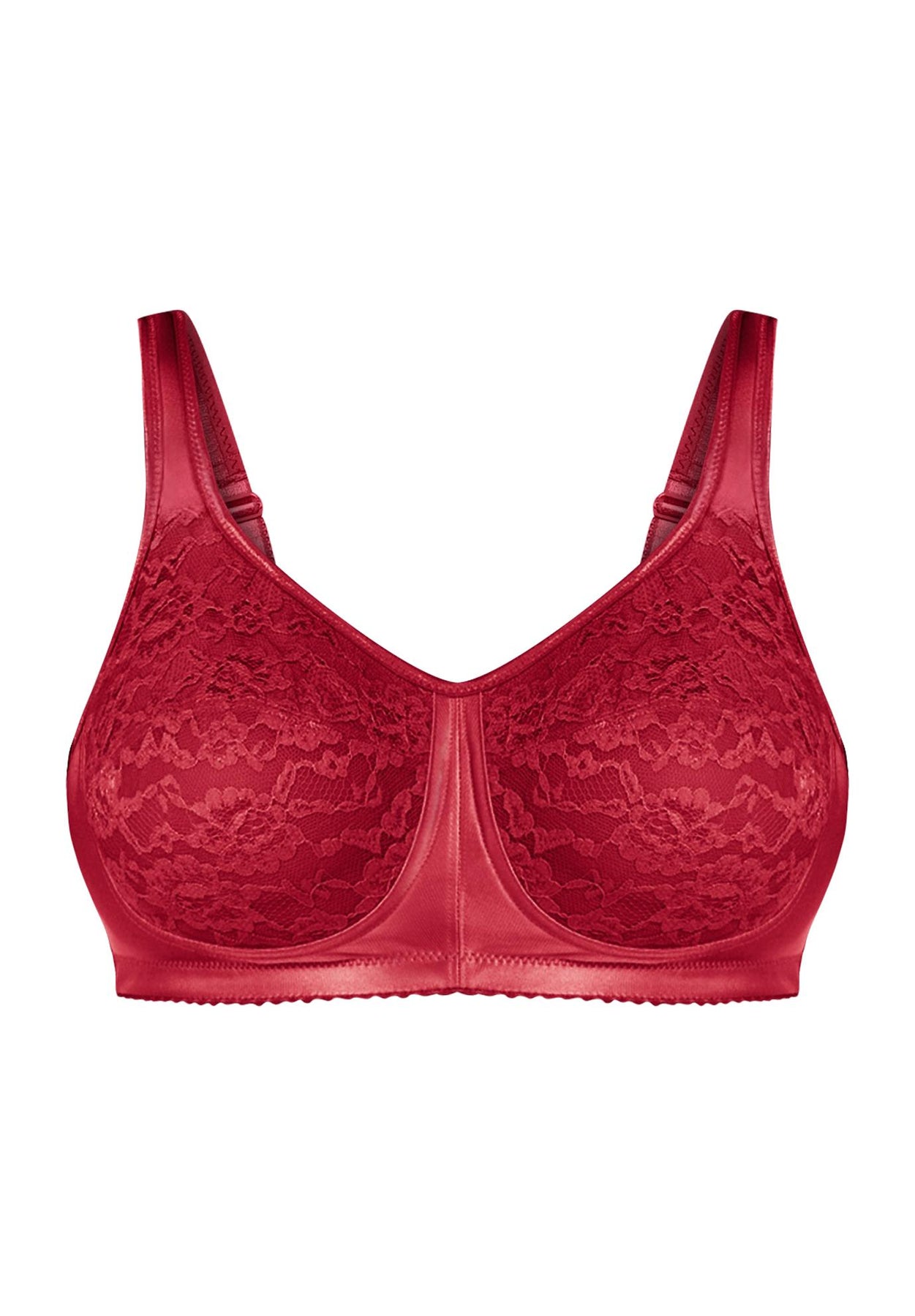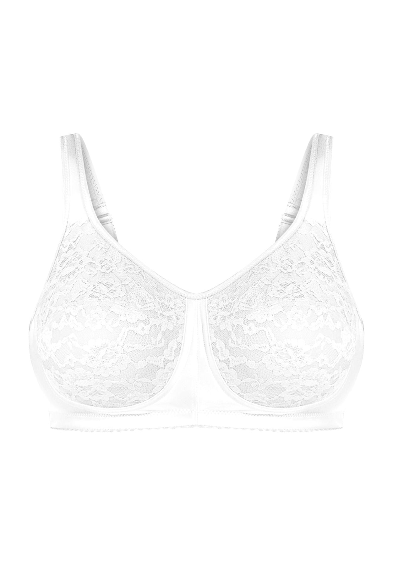 This everyday bra offers comfortable wireless support that never pinches. Lace cups with a crisscrossed inner sling provide lifting support, and cushioned straps help prevent shoulder dig in. Feel pretty and comfortable with this all-day lace bra.