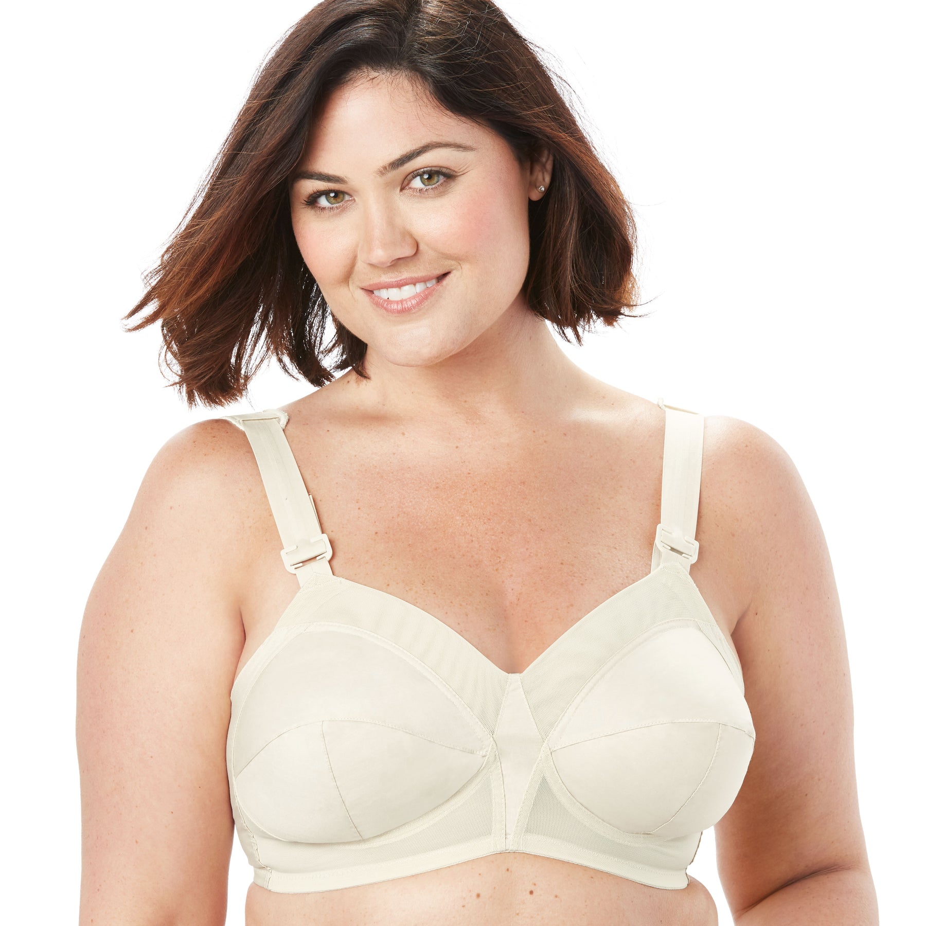 This back-hook bra provides the maximum amount of coverage and support with wireless 3-section cups and a double fabric center panel. Adjustable straps with cushioned slip-on pads lay comfortably on the shoulders and a secure bottom band stays in place, never rolls or rides up.