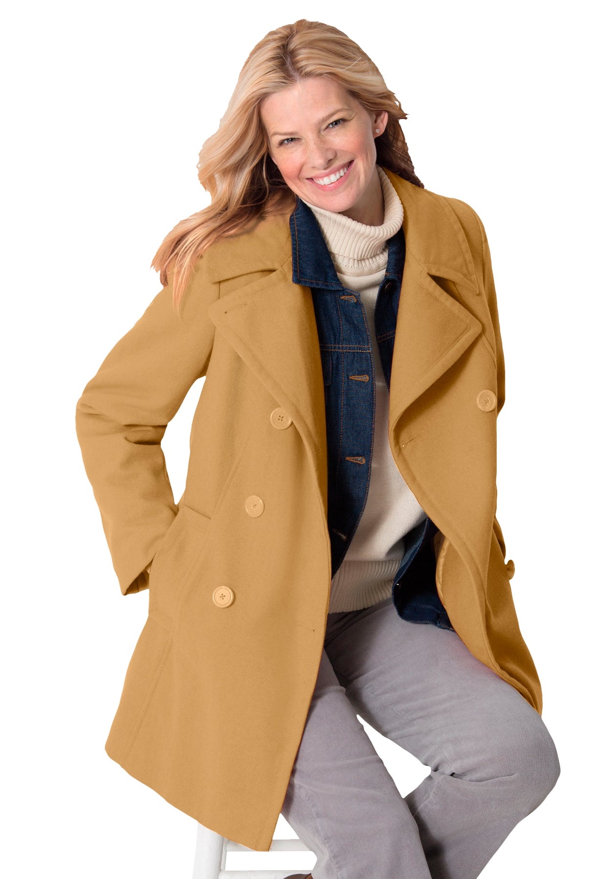 Wool-Blend Double-Breasted Peacoat | Woman Within