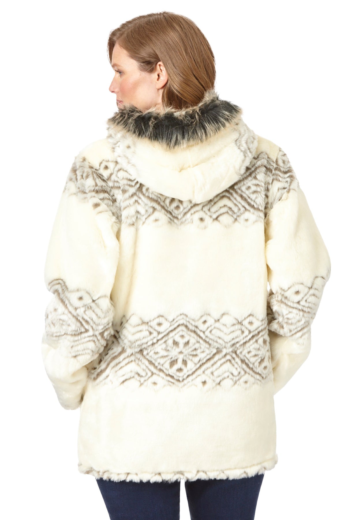 Faux Fur Snowflake Print Hooded Jacket | Woman Within