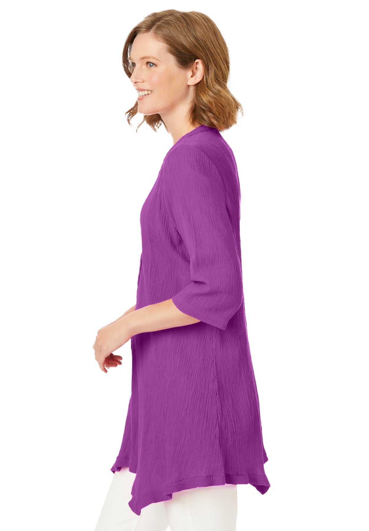 Crafted from airy gauze with a flattering handkerchief hem, this-V-neck top is a must-have addition to your wardrobe. A draped shape combines with just the right length for layering over shorts or leggings.
