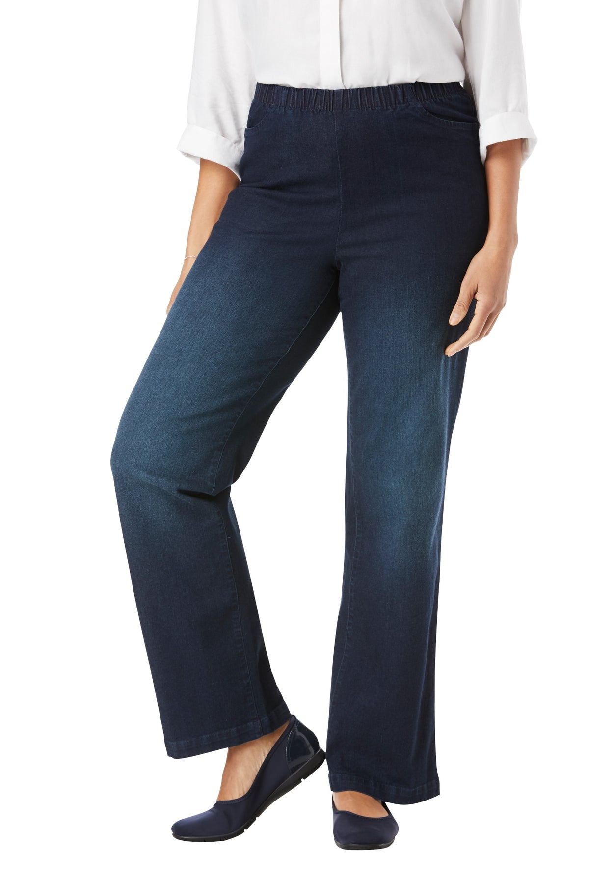 Fineline Stretch Denim Wide-Leg Pull-On Jeans | Woman Within