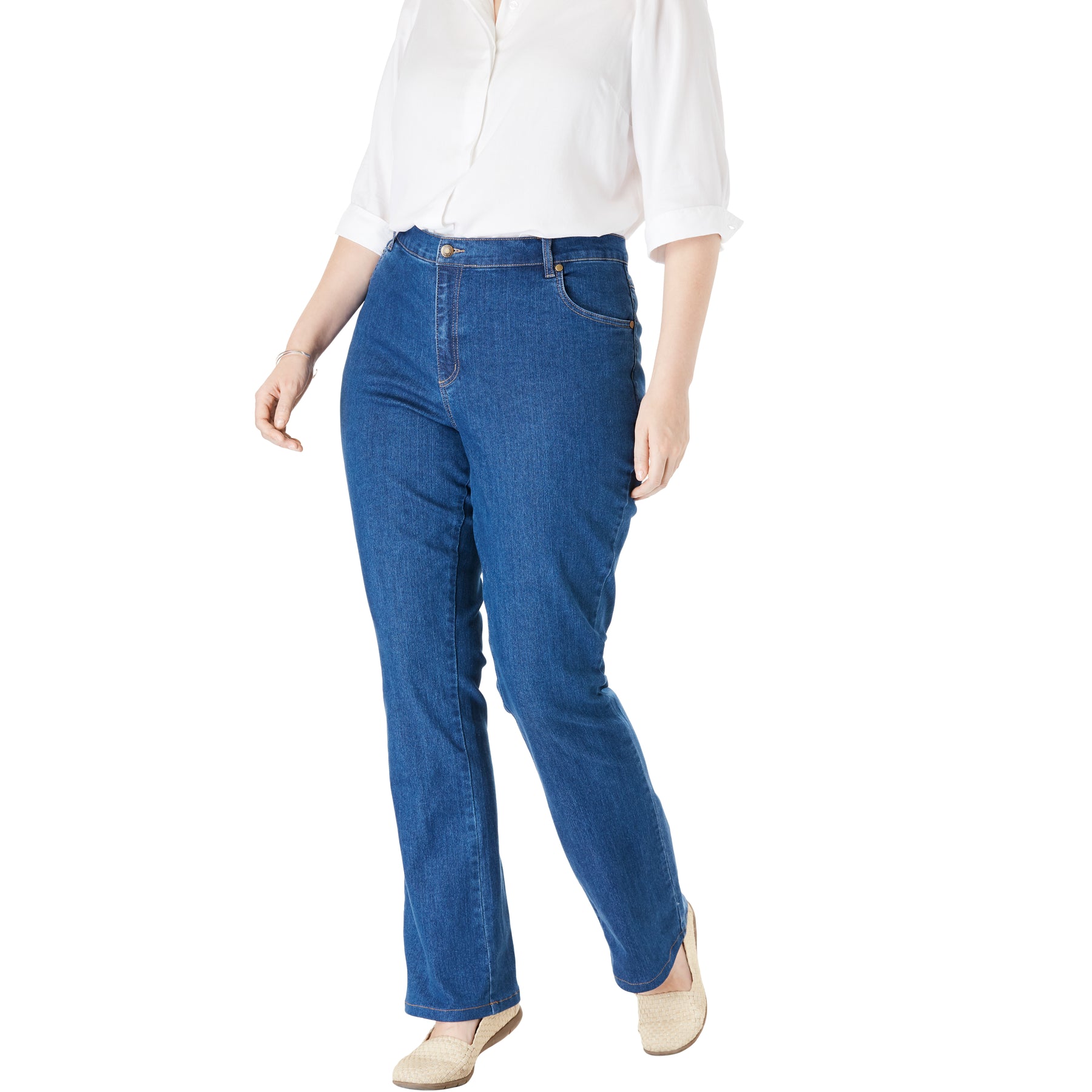 These classic five-pocket jeans are made from soft stretch cotton for a great fit that moves with your body. A bootcut-leg pairs with your favorite shoes effortlessly. Our special stretch blend hugs your curves comfortably, achieving a feminine shape. The zip fly front secures with a jean tack button.