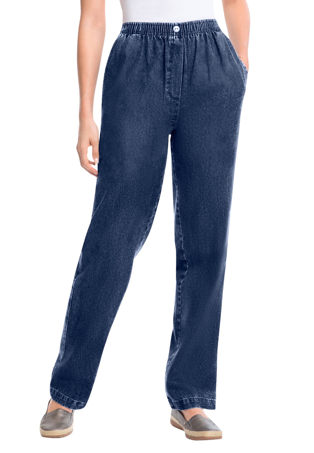 Straight-Leg All-Cotton Denim Pull-On 7-Day Elastic-Waist Jeans | Woman Within
