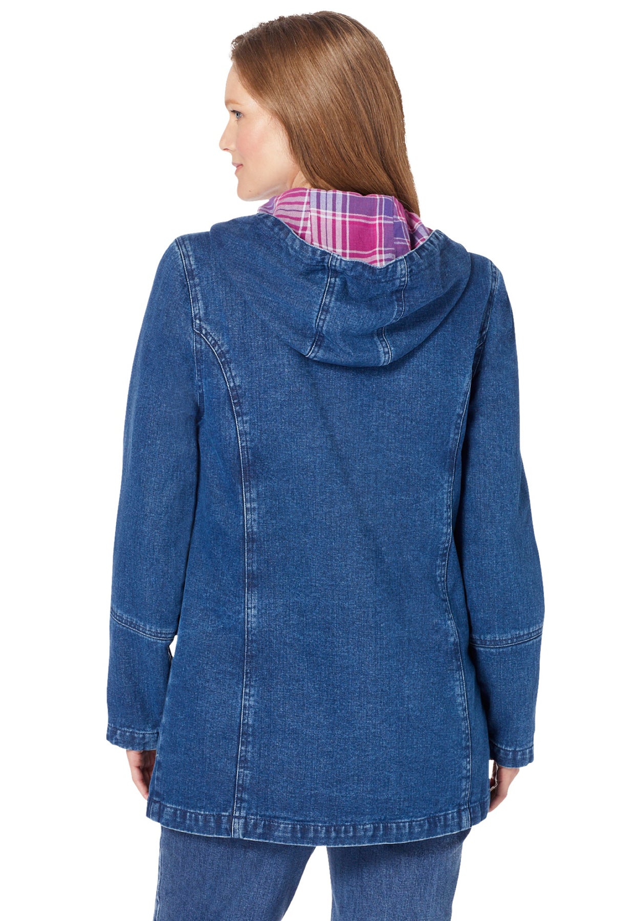 The classic denim jacket gets a cozy upgrade with flannel lining. Easy full zip front. The flannel plaid lining is perfect for changing seasons.