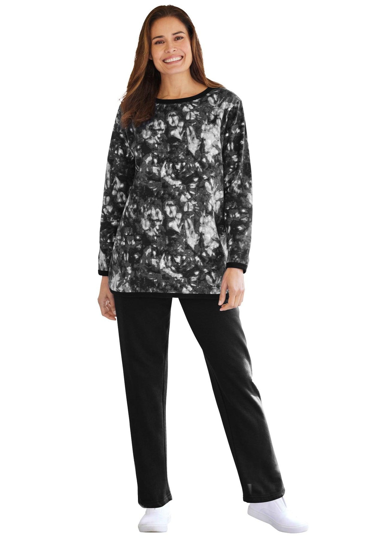 This coordinated fleece set may be your most comfortable yet. A pair of straight-leg pants with an elastic waistband pair with a long-sleeved crewneck top for the ultimate relaxed fit. Made for leisurely days, you’ll love throwing on this easy sweatsuit.