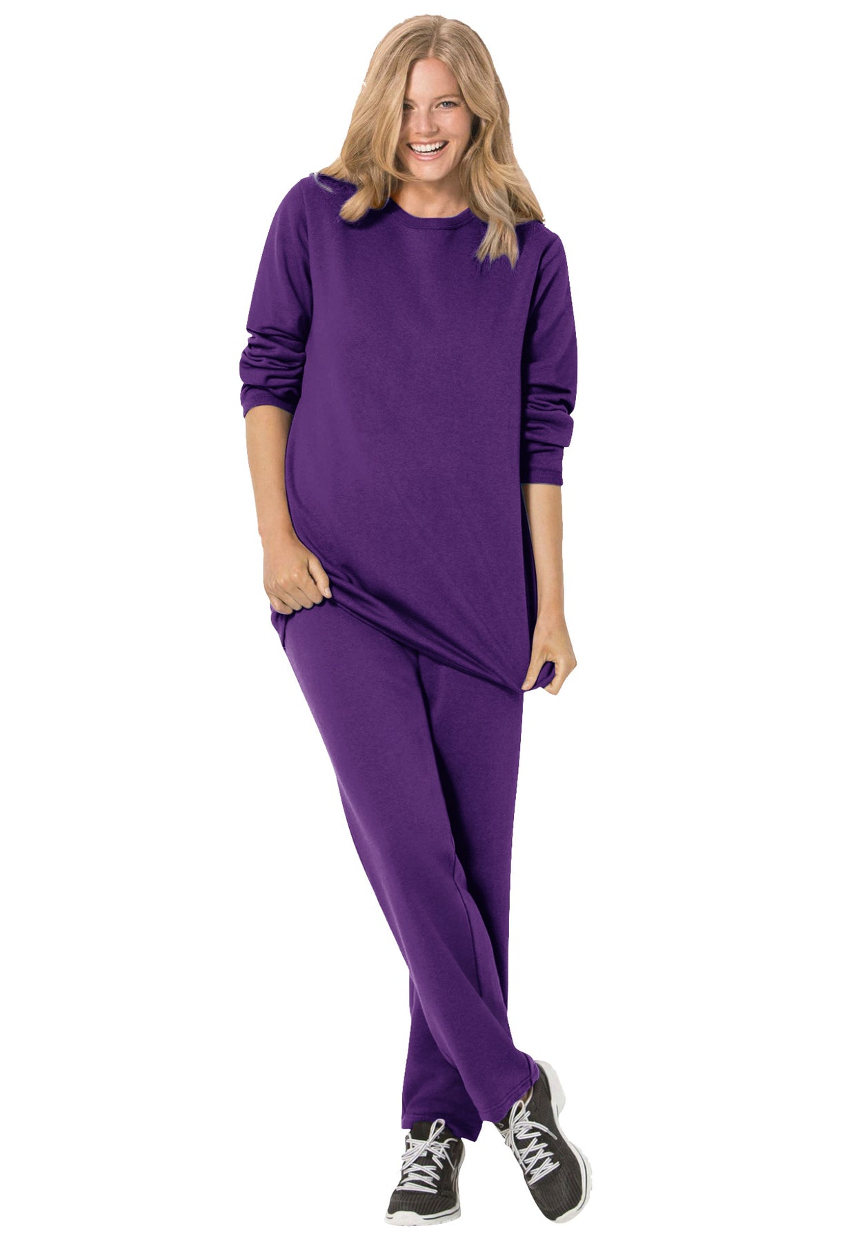 This coordinated fleece set may be your most comfortable yet. A pair of straight-leg pants with an elastic waistband pair with a long-sleeved crewneck top for the ultimate relaxed fit. Made for leisurely days, you’ll love throwing on this easy sweatsuit.