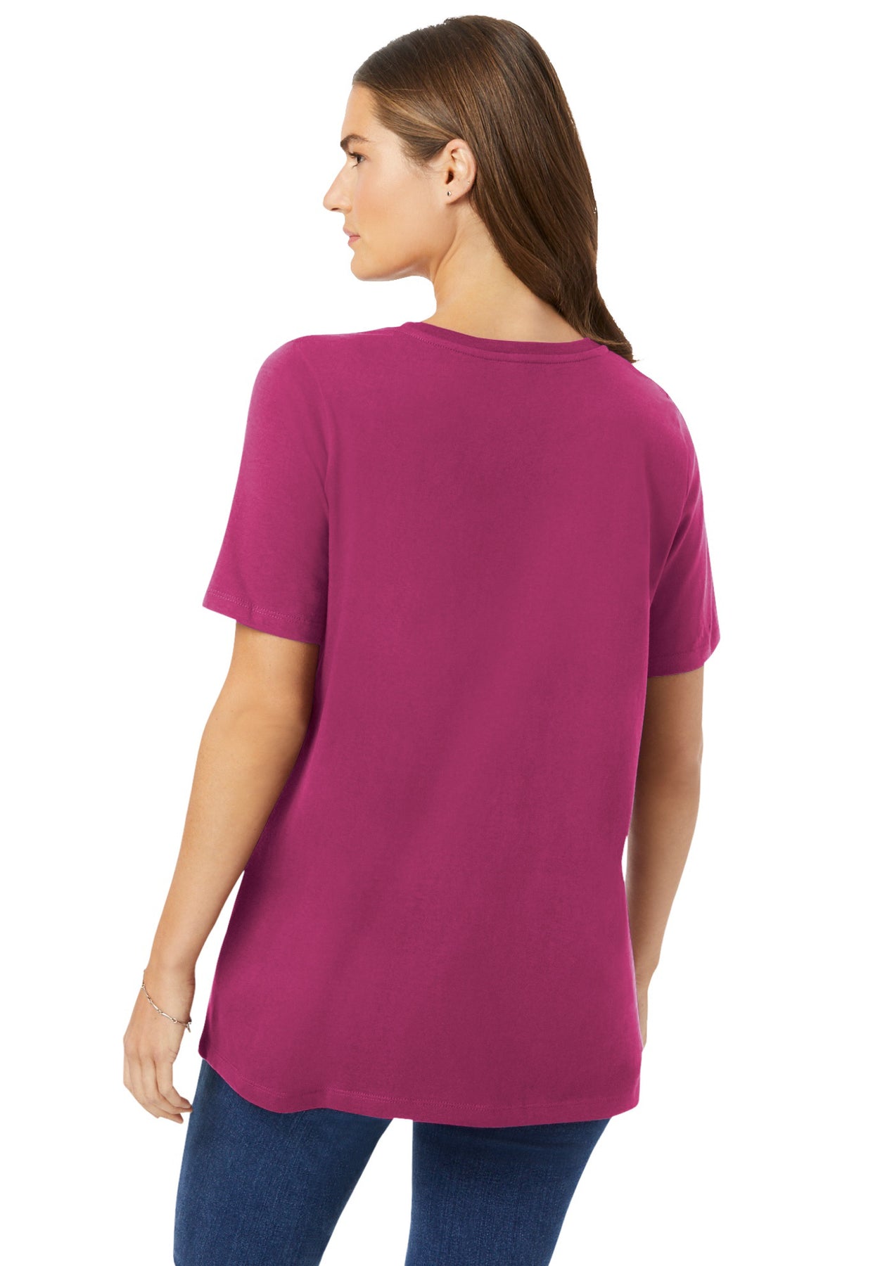 The Woman Within Perfect Tee is designed specifically for plus-size fit—so it drapes smoothly, never clings, and holds its shape wear after wear–which is why we call them ‘Perfect’. The relaxed silhouette is balanced for comfort. Wear it alone or layered—this is the foundational piece your wardrobe depends on. Available in regular and petite lengths for proportions that truly fit.