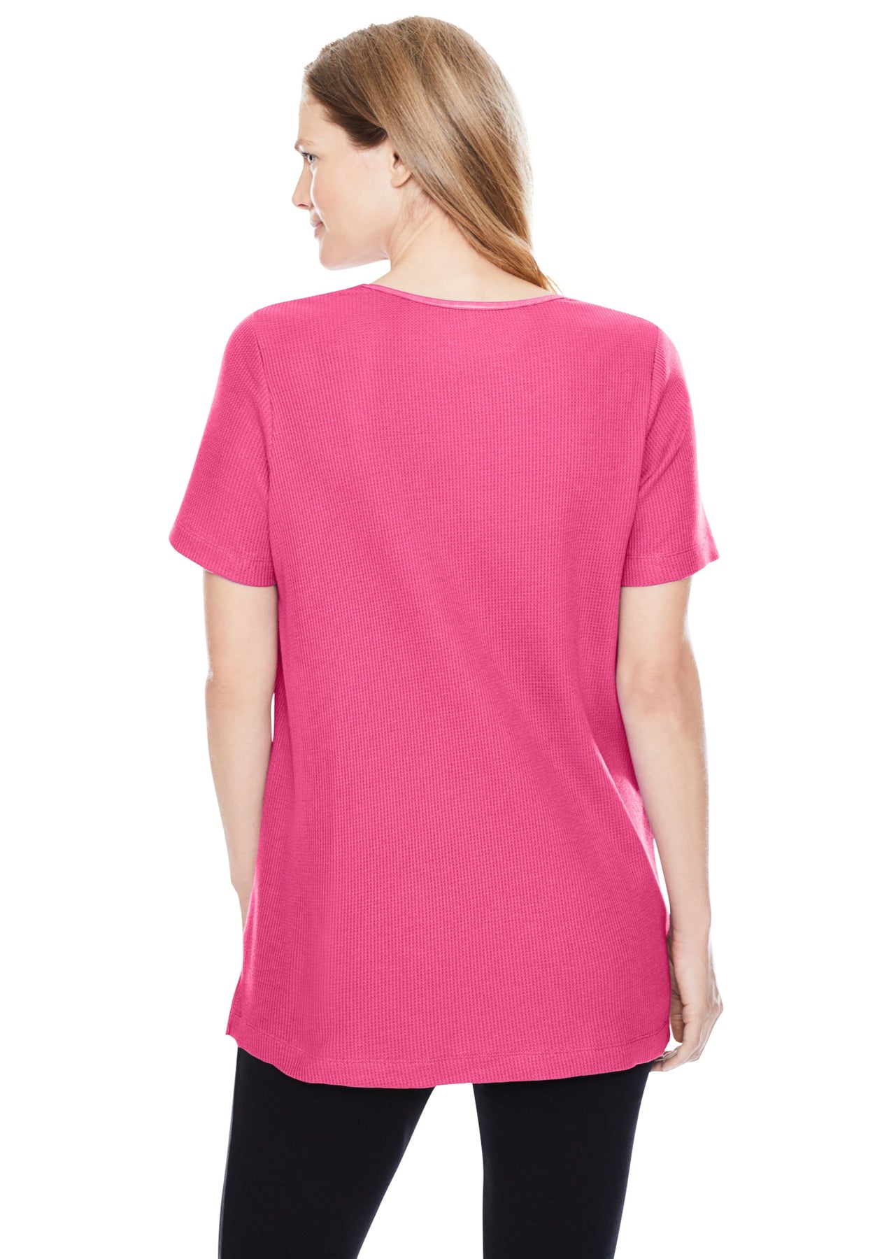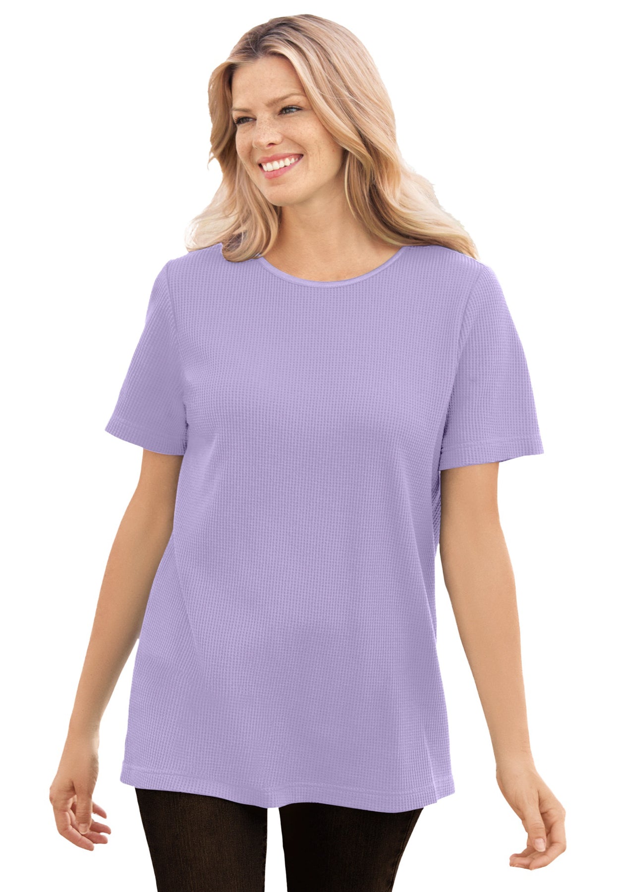 • Our best-selling waffle-knit thermal top featuring a shiny satin crewneck.