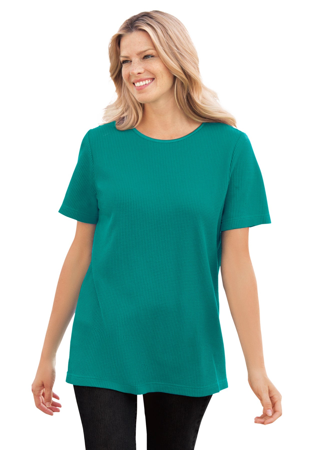 • Our best-selling waffle-knit thermal top featuring a shiny satin crewneck.