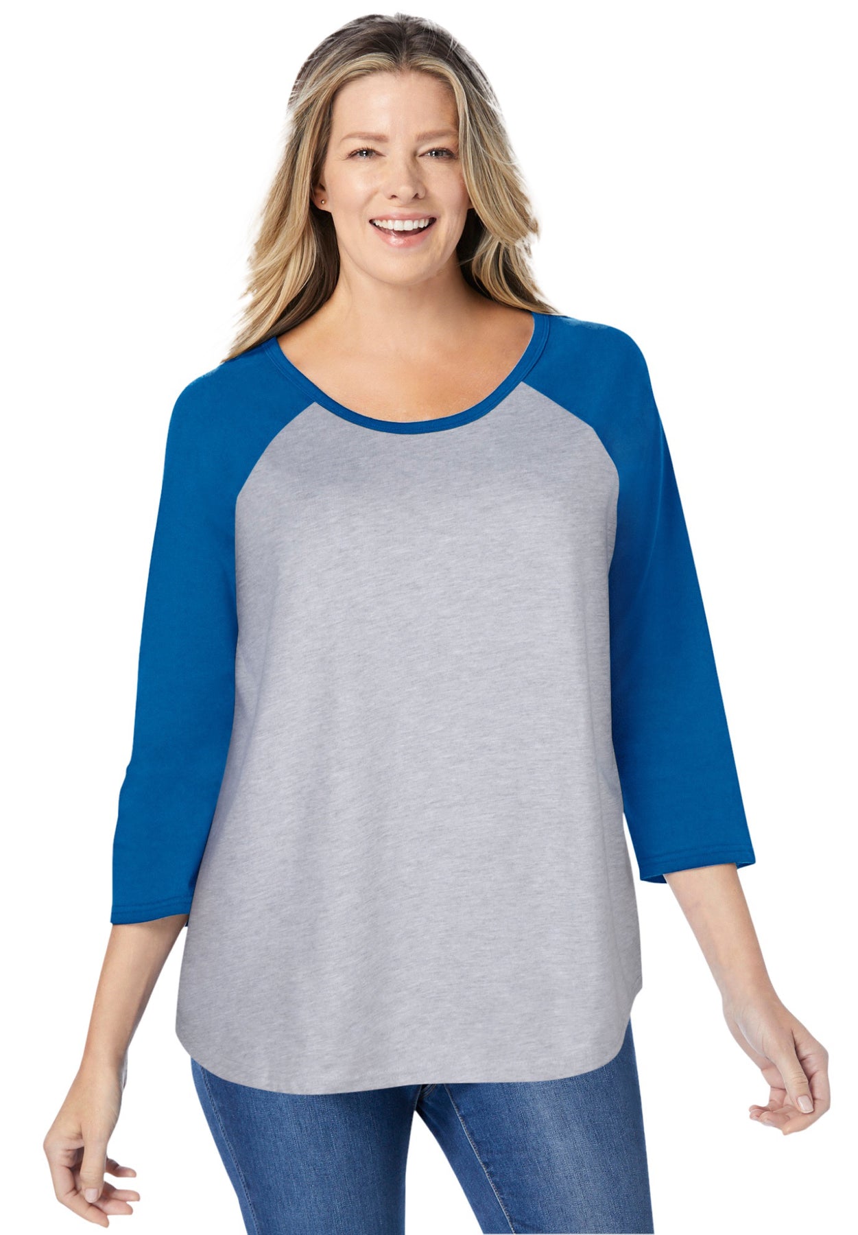 - Classic baseball tee style with raglan sleeves for a sporty yet feminine look.