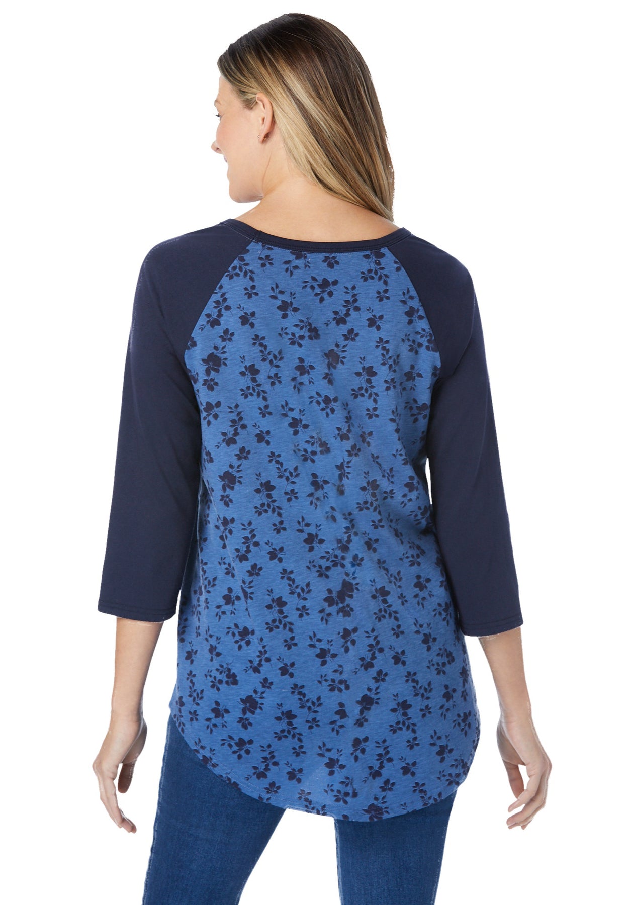 - Classic baseball tee style with raglan sleeves for a sporty yet feminine look.