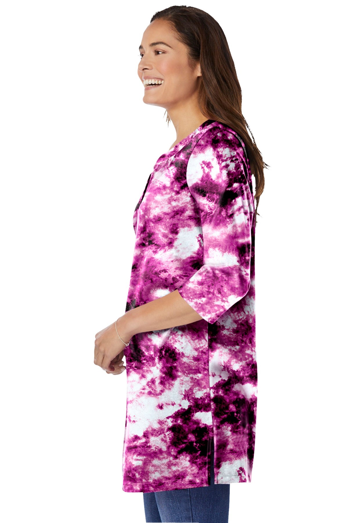 Easy and breezy. This knit tunic has a relaxed feel that is made in a comfortable fit to feel good the entire day. A soft knit fabric and three-quarter sleeves up the comfort factor, and a small V-neck creates a flattering, face-framing shape.