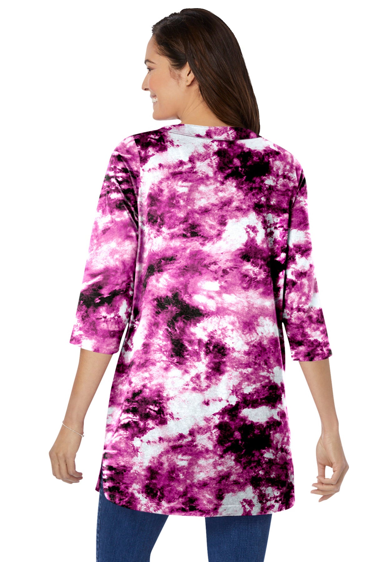 Easy and breezy. This knit tunic has a relaxed feel that is made in a comfortable fit to feel good the entire day. A soft knit fabric and three-quarter sleeves up the comfort factor, and a small V-neck creates a flattering, face-framing shape.