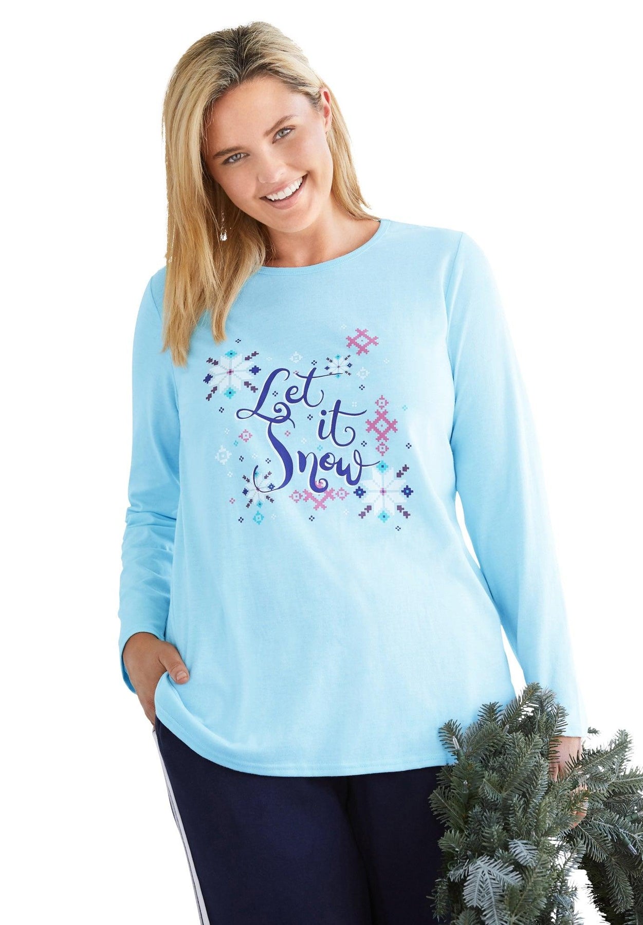Celebrate the season with these super cute graphic screen printed tees featuring festive motifs. Comfy jersey pairs with a relaxed fit and long sleeves to keep you cheery. Perfect for gifting.