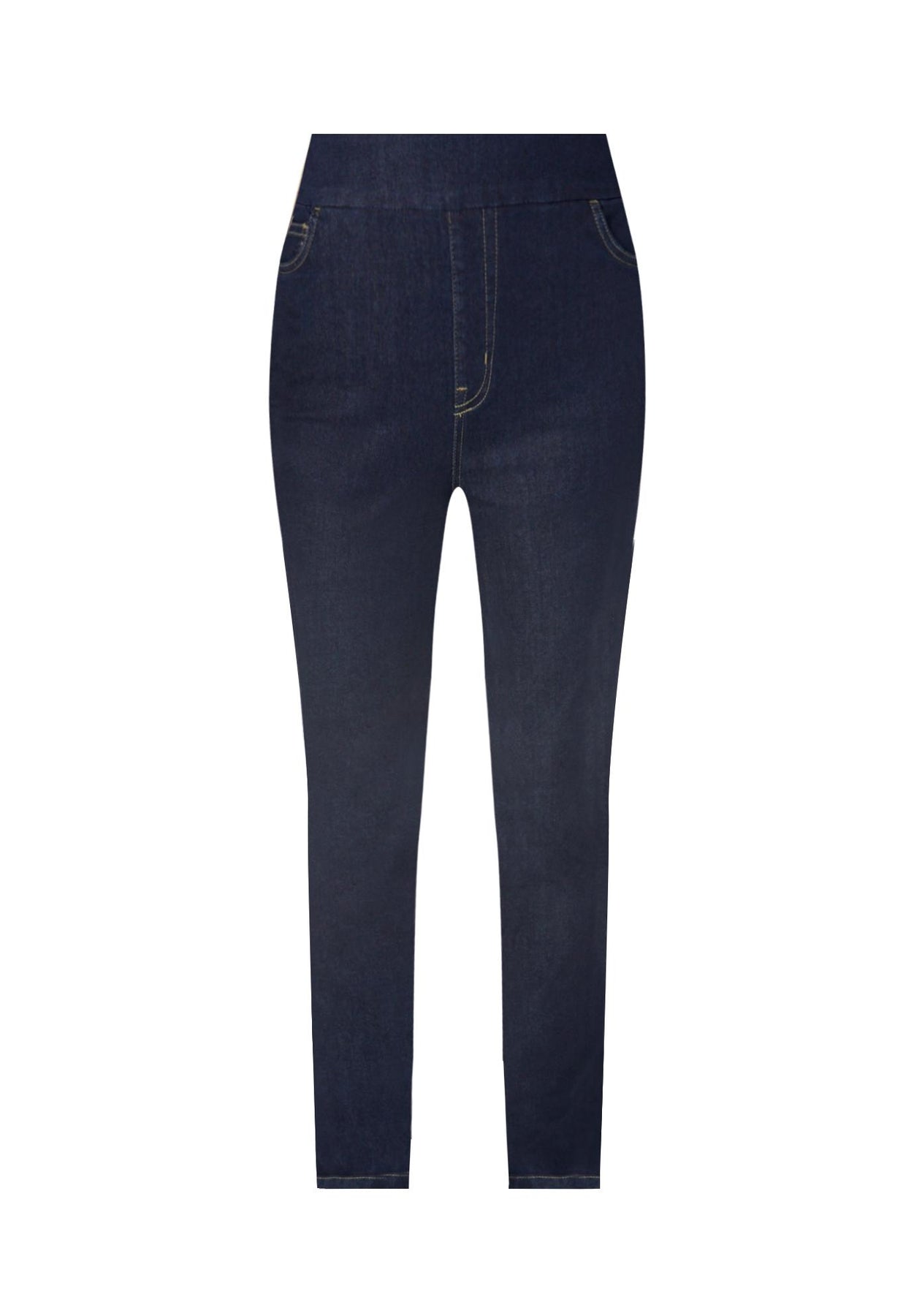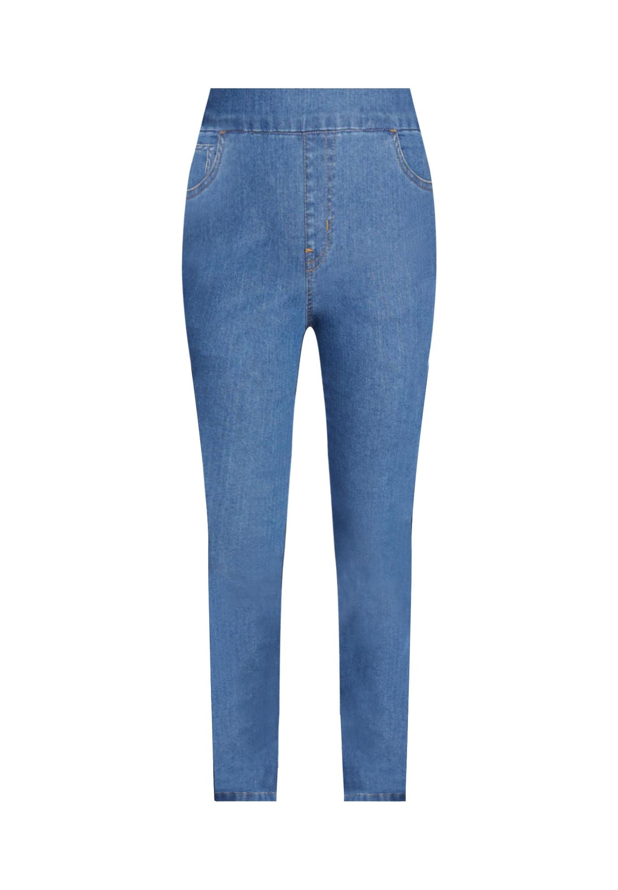 These easy, slim-leg stretch denim jeans are designed with a full flat, no-gap elastic waistband. The jeans provide a smooth look under all your favorite tops and tunics. Enjoy the classic look of a great pair of jeans but move comfortably thanks to allover stretch.