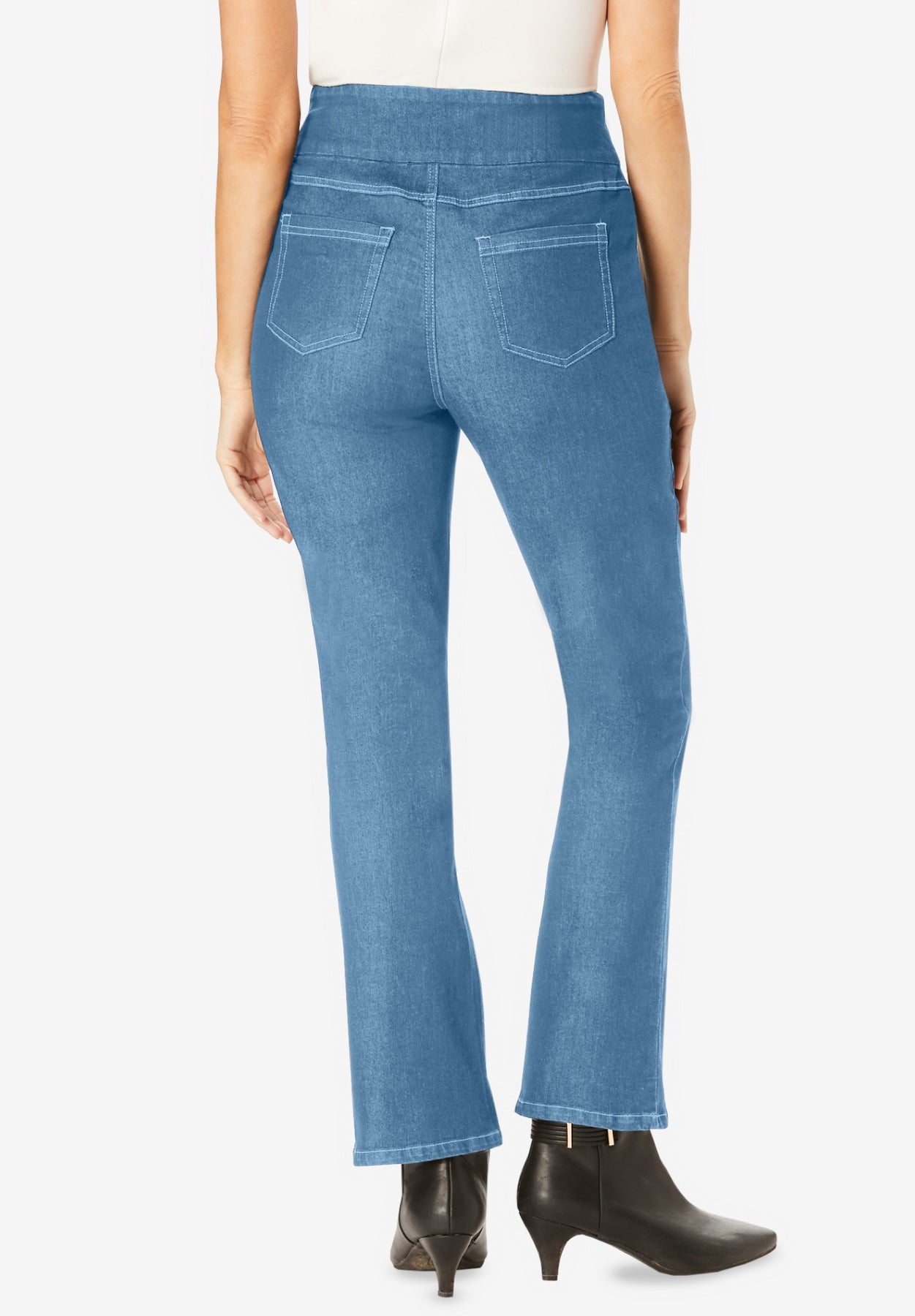 Flex-Fit Pull-On Bootcut Gap-Free Stretch Denim Jeans | Woman Within