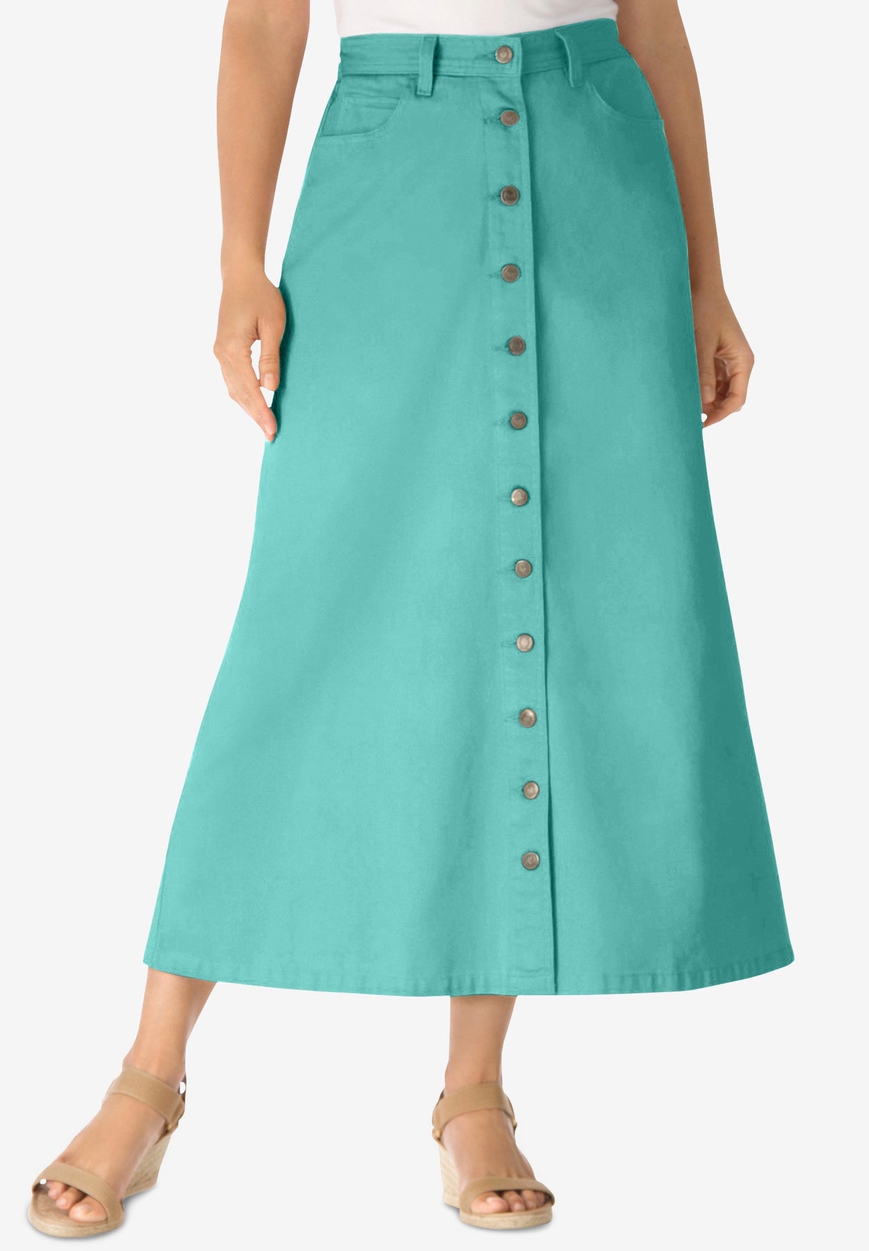 A classic denim skirt is great any time of year. Our Perfect Denim is made from non-stretch 100% cotton that gives you a custom-feeling fit as you wash and wear and the denim softens. Ours gets a comfort upgrade thanks to a side elastic waistband that moves with you all day long but also provides a gap-free fit.