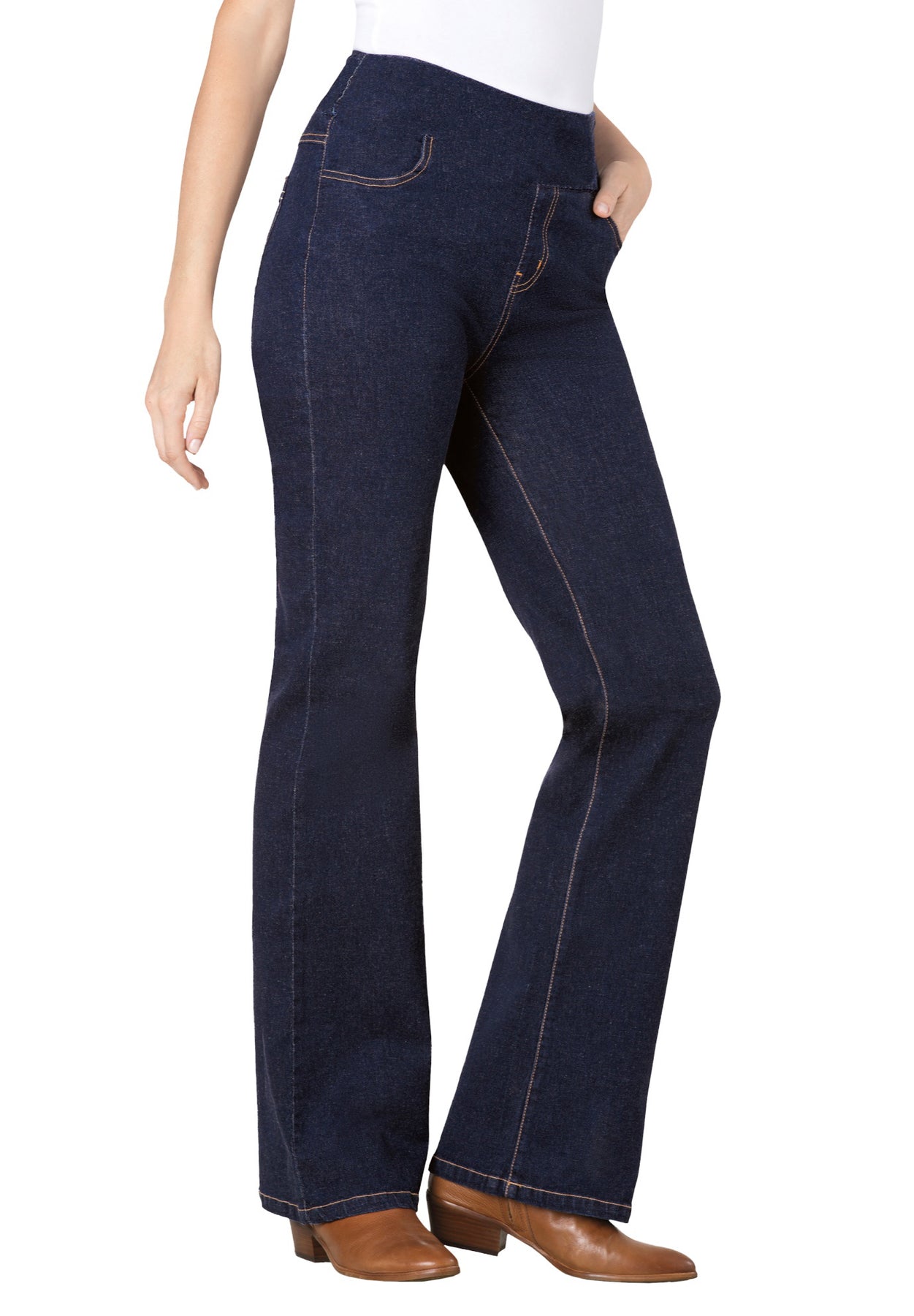 Flex-Fit Pull-On Bootcut Gap-Free Stretch Denim Jeans | Woman Within