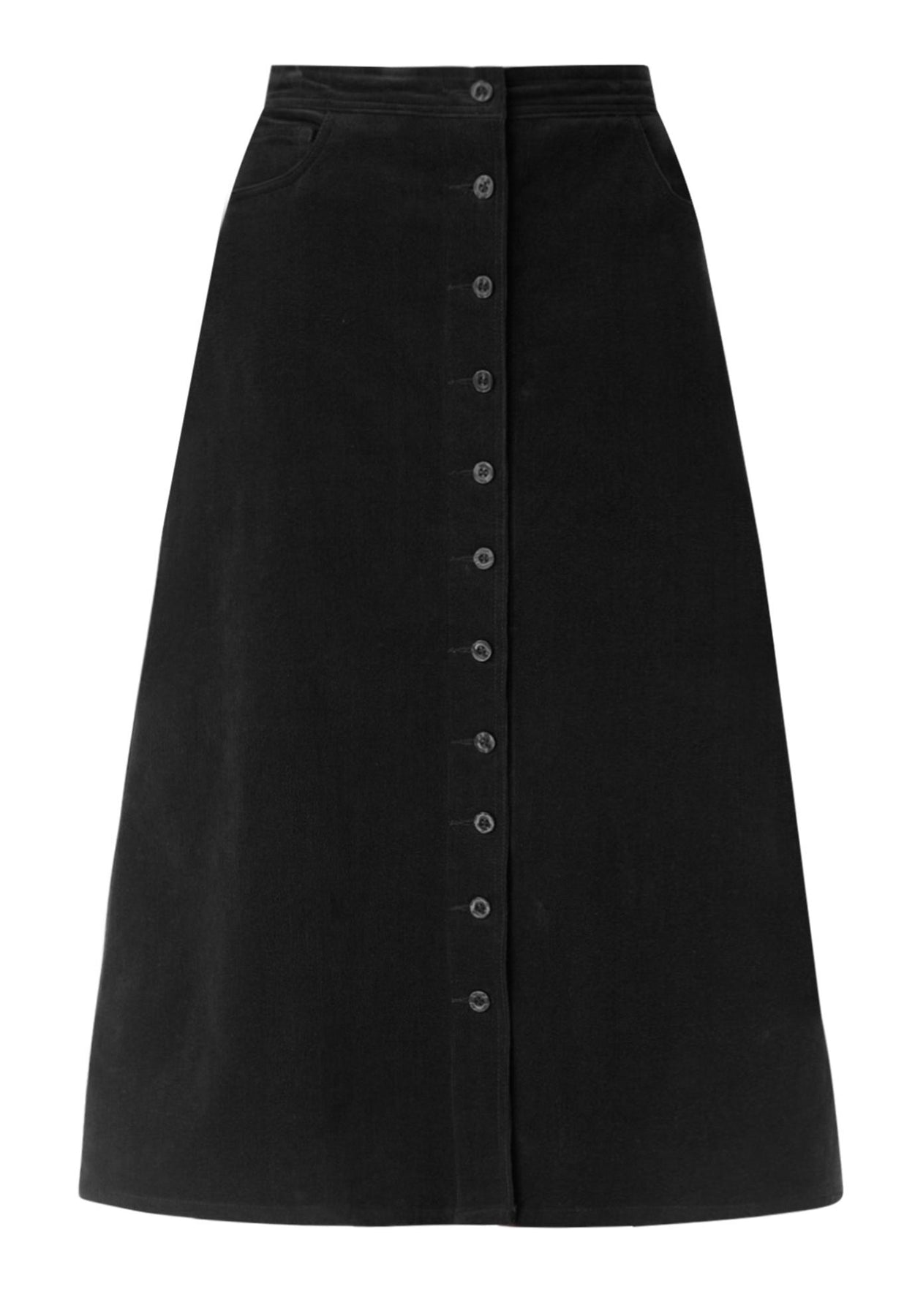My black skirt arrived on Monday, March, 17.th. I can easily confirm what I wrote on December, 29.th 2024 about my chocolate one: it is made with a soft comfortable fabric, it is flared, so that the wearer can easily walk and the length is between calf and ankle, just above my ankle boots, at least for me, that I am 5' 11" tall. The images on the Internet site do not give the same favourable impressione one can have directly seeing and touching the item: the buttons really match the fabric colour, being, by the way, soft to fasten and unfasten.