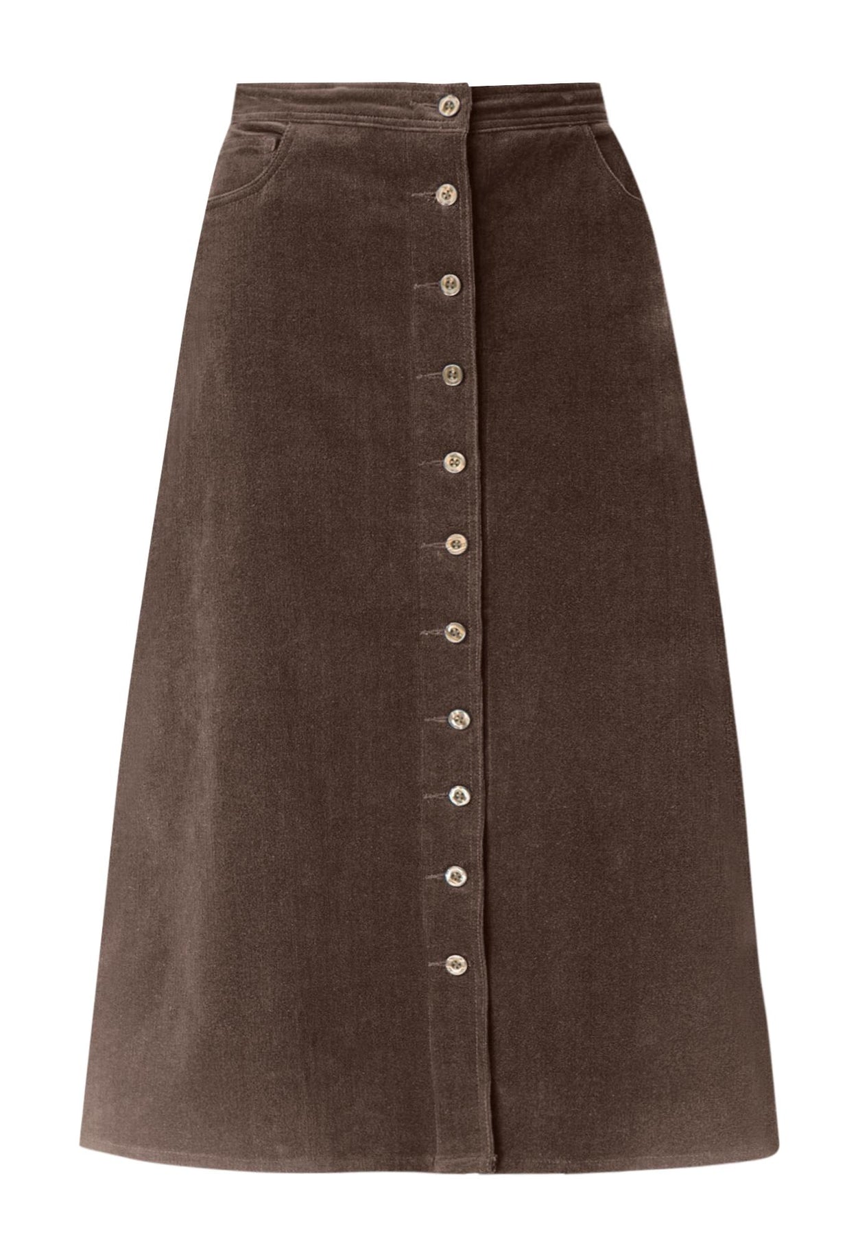 Thank you for taking the time to leave such a detailed review for our corduroy skirt. We are thrilled to hear that you are enjoying the quality and comfort of the skirt in both black and chocolate colors. We completely agree that the images on our website do not do justice to the actual fabric and color of the skirt. We strive to provide accurate representations of our products, but there's nothing like seeing and feeling it in person. Thank you for your kind words about the buttons as well. We appreciate your feedback and hope to see you again soon.
