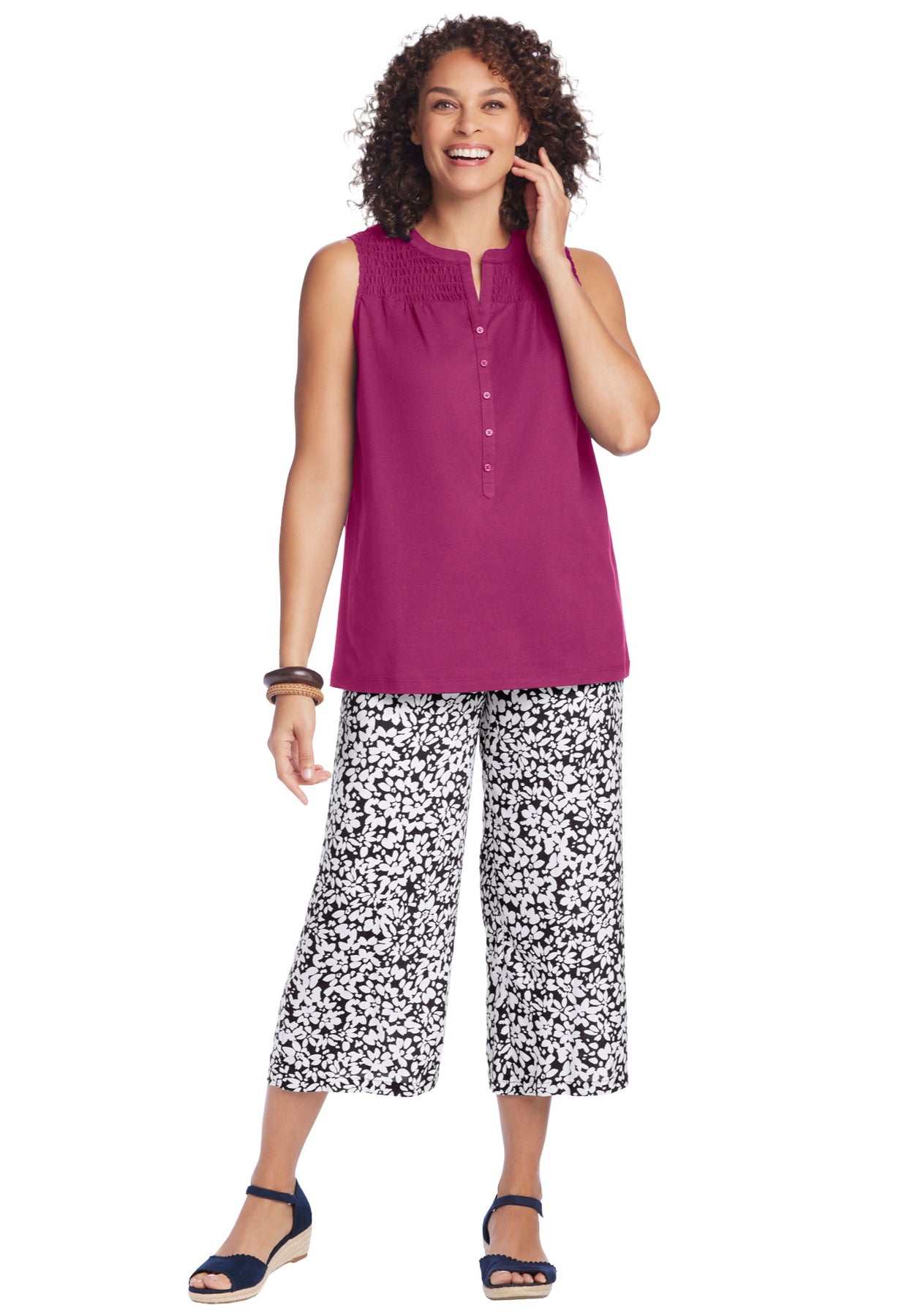Pull-on soft capris in a relaxed fit for cool and easy comfort all spring and summer. Made with a full elastic waistband for pull-on ease.