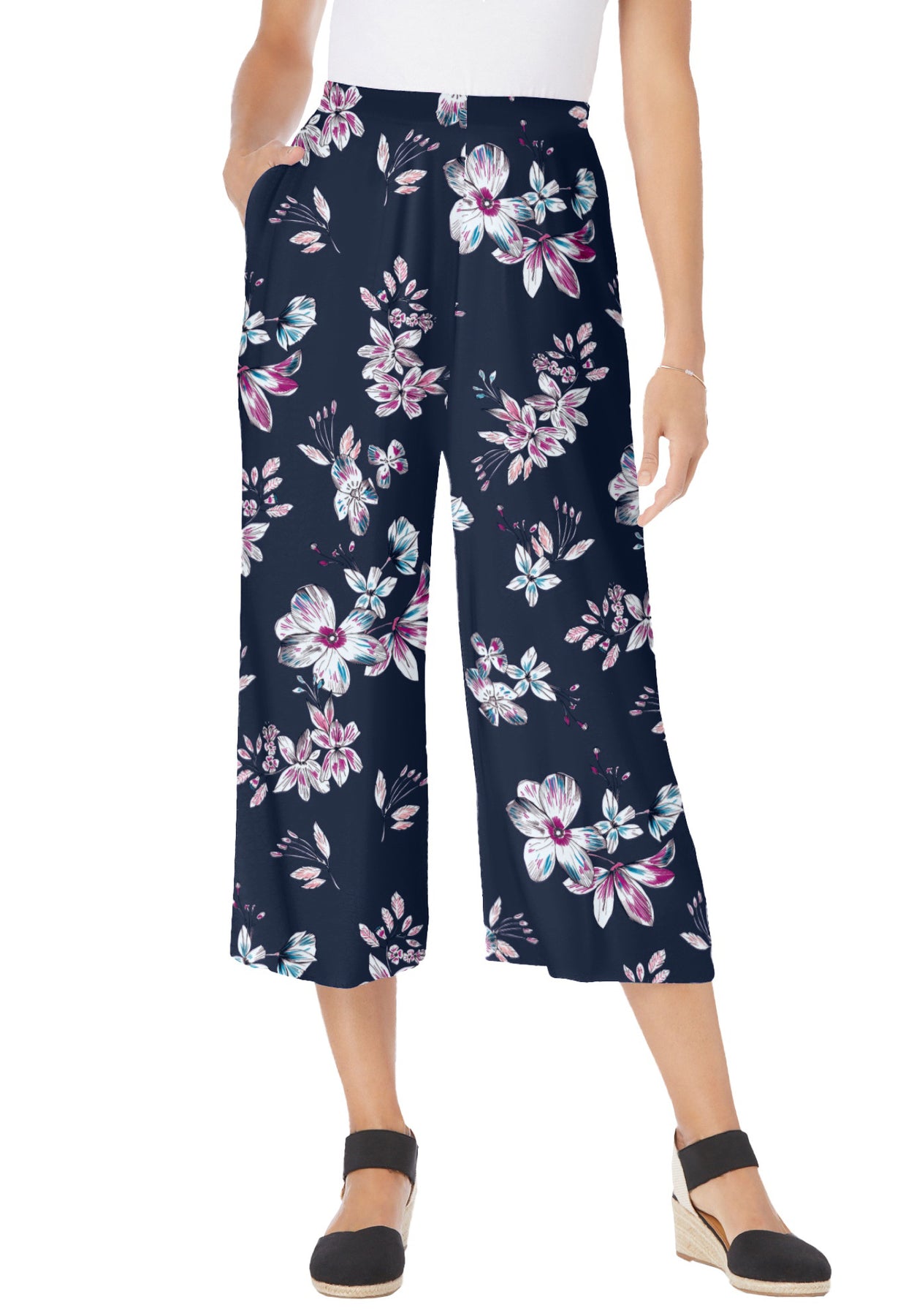 Pull-On Elastic Waist Soft Capri