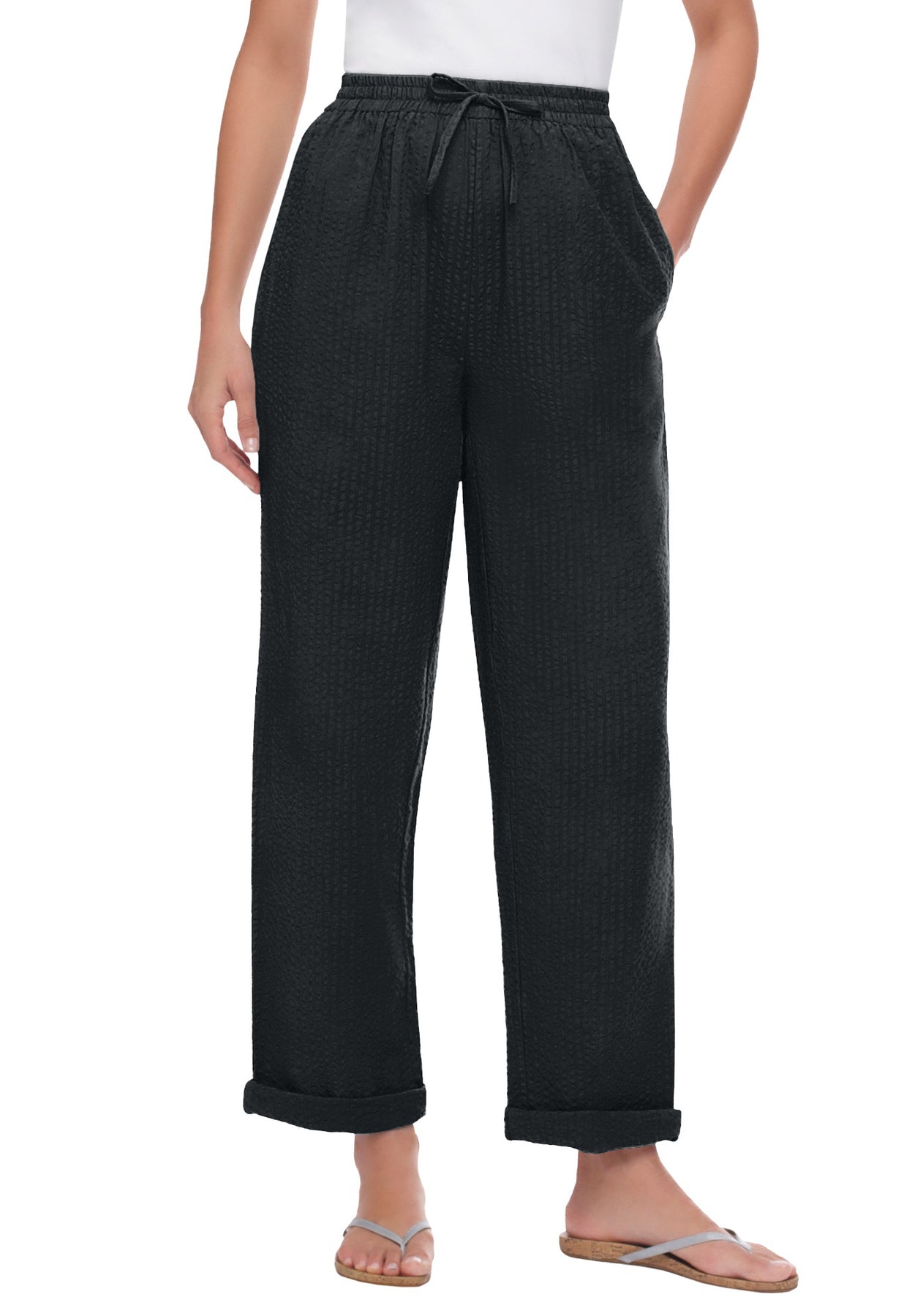 Seersucker Pull-on Elastic-Waist Pants | Woman Within