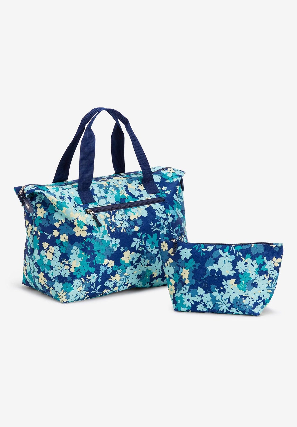 A pretty pair for wherever life takes you! Store and pack your things easily with this carry-all bag and cosmetic case set.