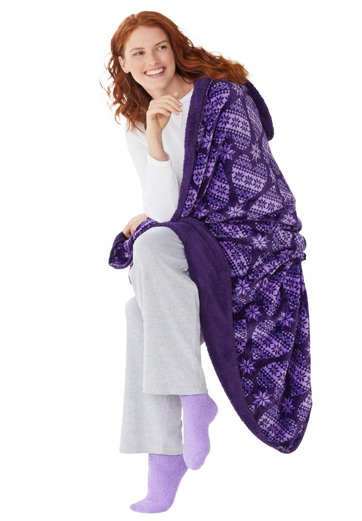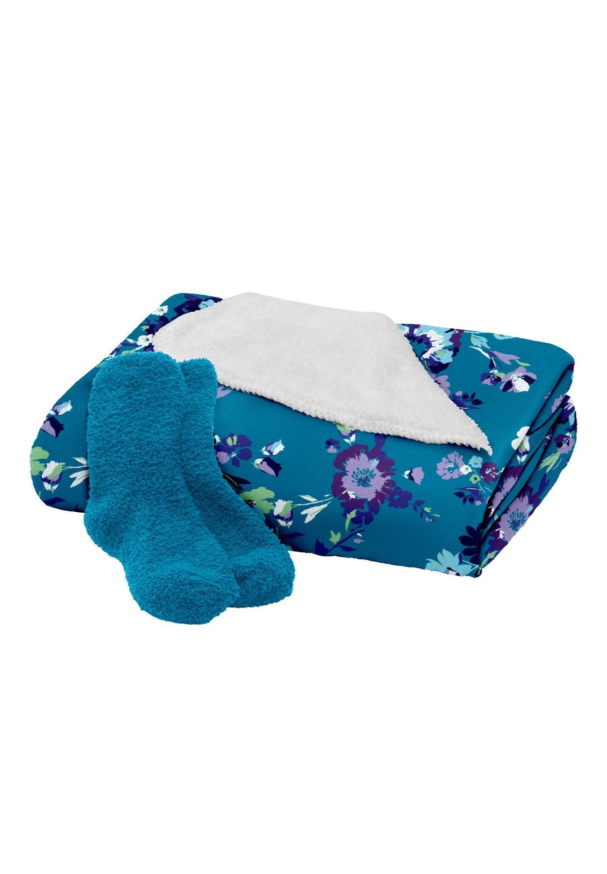 Get your coziest in this supersoft set that includes fluffy socks and snuggly fleece blanket with fluffy lining. So plush and comfy, you’ll find yourself in peak lounge mode.
