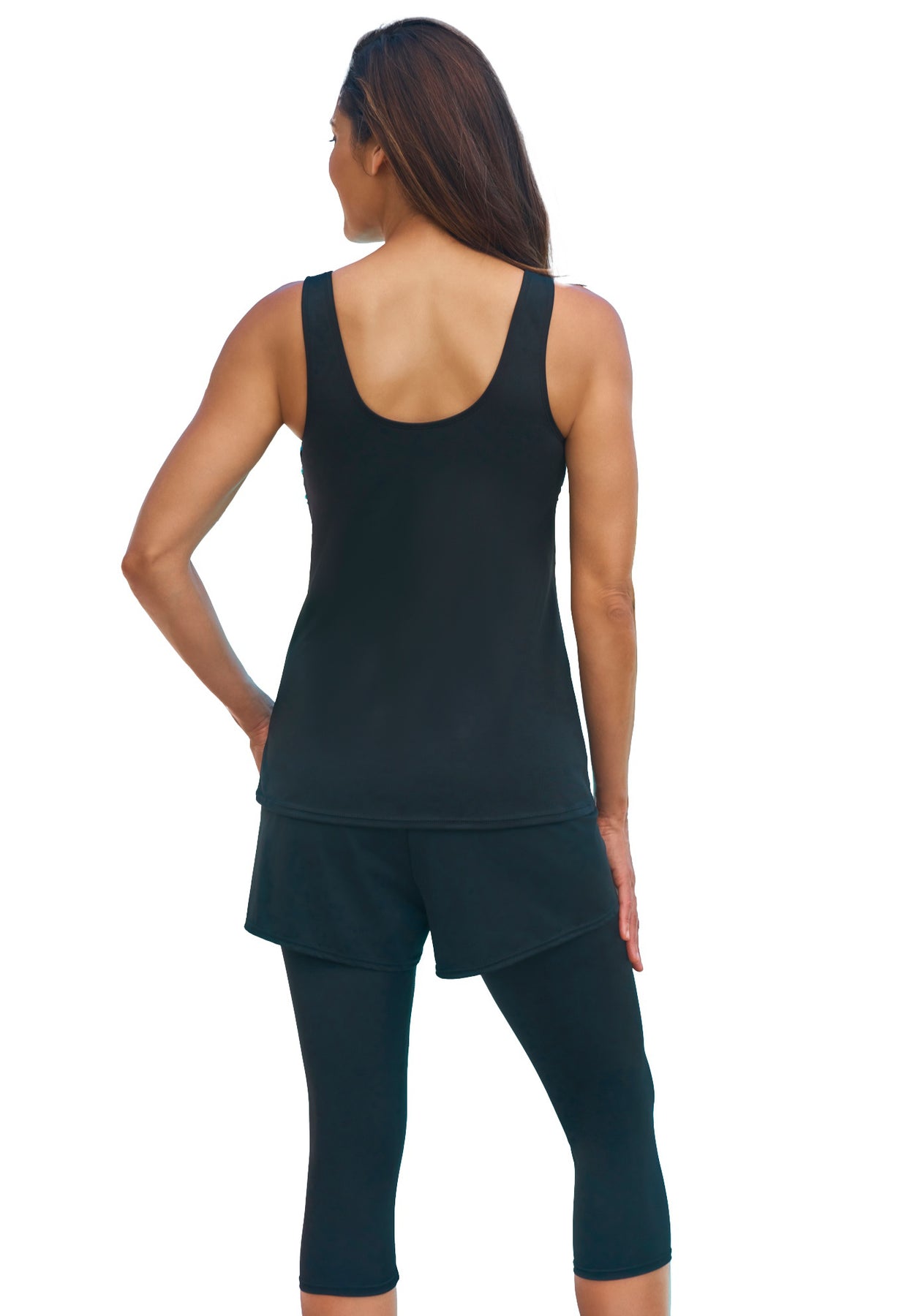 Discover your perfect fit: our scoop neck tankini top combines sporty style and feminine charm. Its longer length offers fuller coverage that's perfect for your active lifestyle, ensuring you stay confident and stylish at the pool or beach. Sewn-in bra cups.