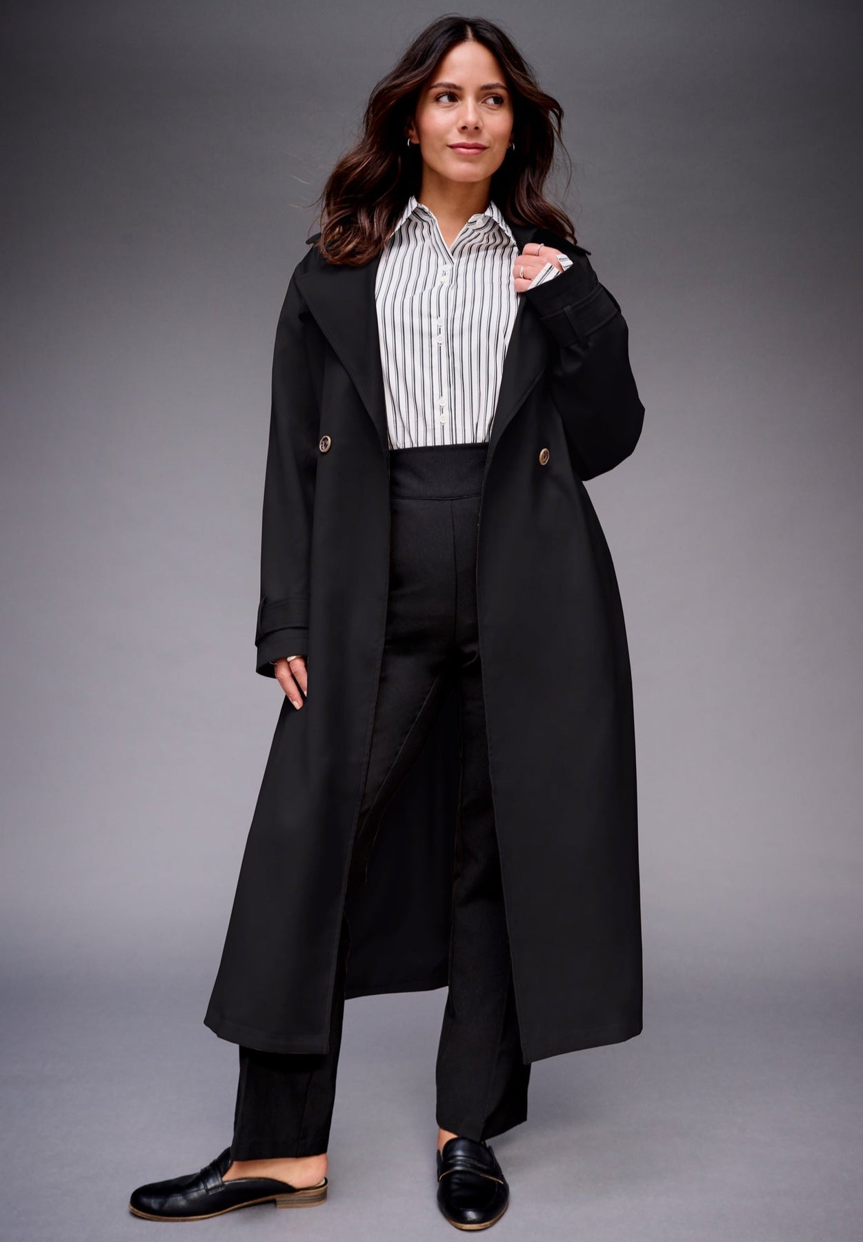 A modern trench with clean, structured lines that instantly elevates your look. The adjustable belt defines the waist for a flattering, refined silhouette. Timeless, versatile, and effortlessly polished—your go-to layer for every season.