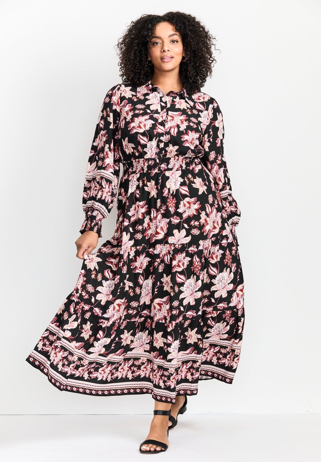 Step into effortless elegance with the Shiloh Tiered Maxi Dress! This stunning collared, button-through dress boasts a shirred waist and a tiered maxi skirt, creating a silhouette that's both flattering and chic. The blouson sleeves with shirred cuffs add a touch of romantic flair, ensuring you exude confidence and charm wherever you go. Whether you're twirling at a garden party or making a statement at a rooftop soirée, the Maxi Shiloh promises to be your go-to piece for every occasion!