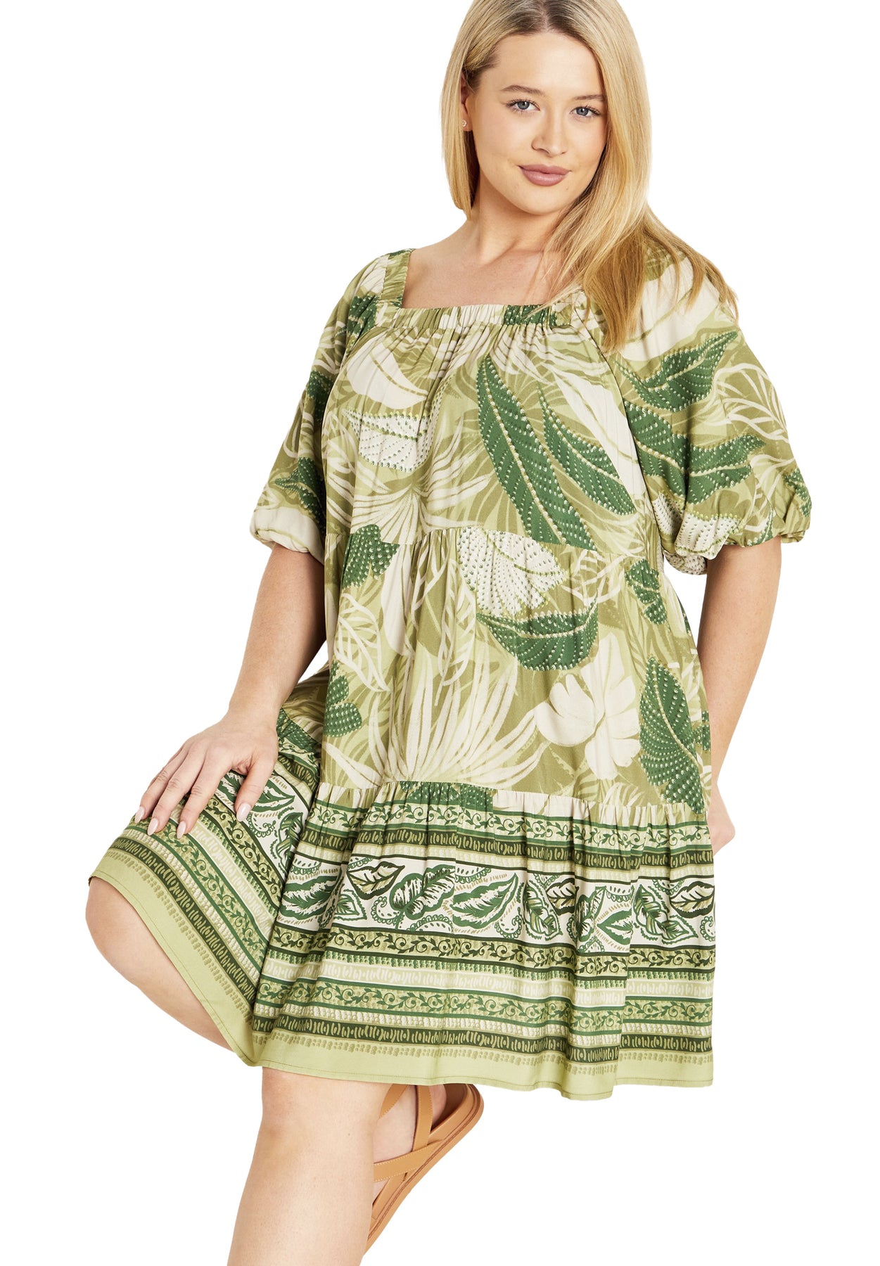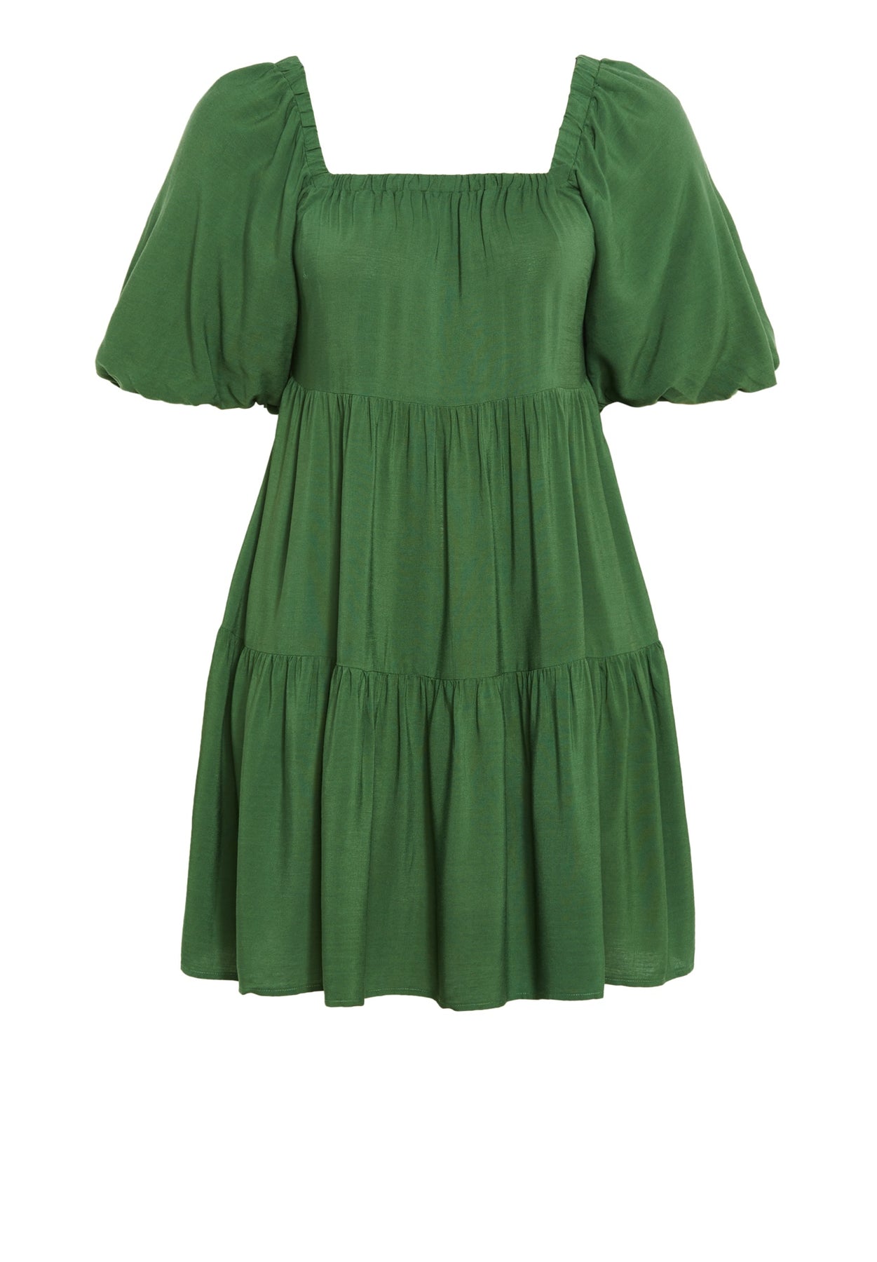 Show off your curves with our Bonnie Dress. Displaying a square neckline to enhance your graceful curves, and a tiered skirt to accentuate your femininity, the lightweight fabrication ensures comfort all day long. Key Features Include: - Square neckline - Elasticated neckline - Short puff sleeves - Elasticated cuffs - Pull over style - Lightweight fabrication - Tiered skirt - Mini length Pair with brown mules for an amplified look perfect for lunch with friends.